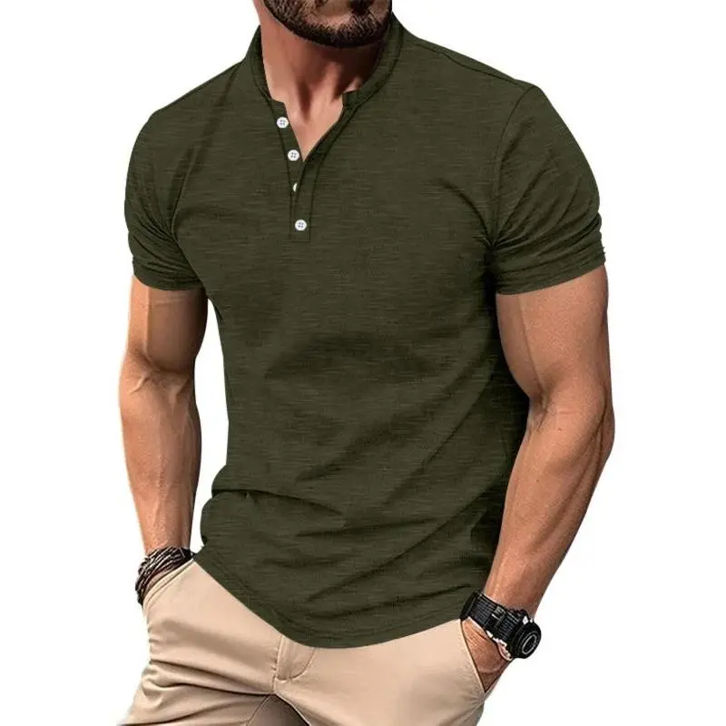 Men's Regular Fit Solid Short Sleeve Henley Tee, Casual Breathable Quick Drying T-shirt for Outdoor Sports, Men's Top for All Seasons