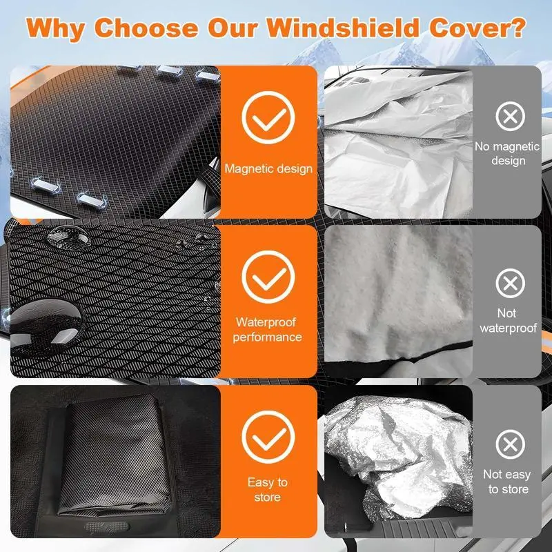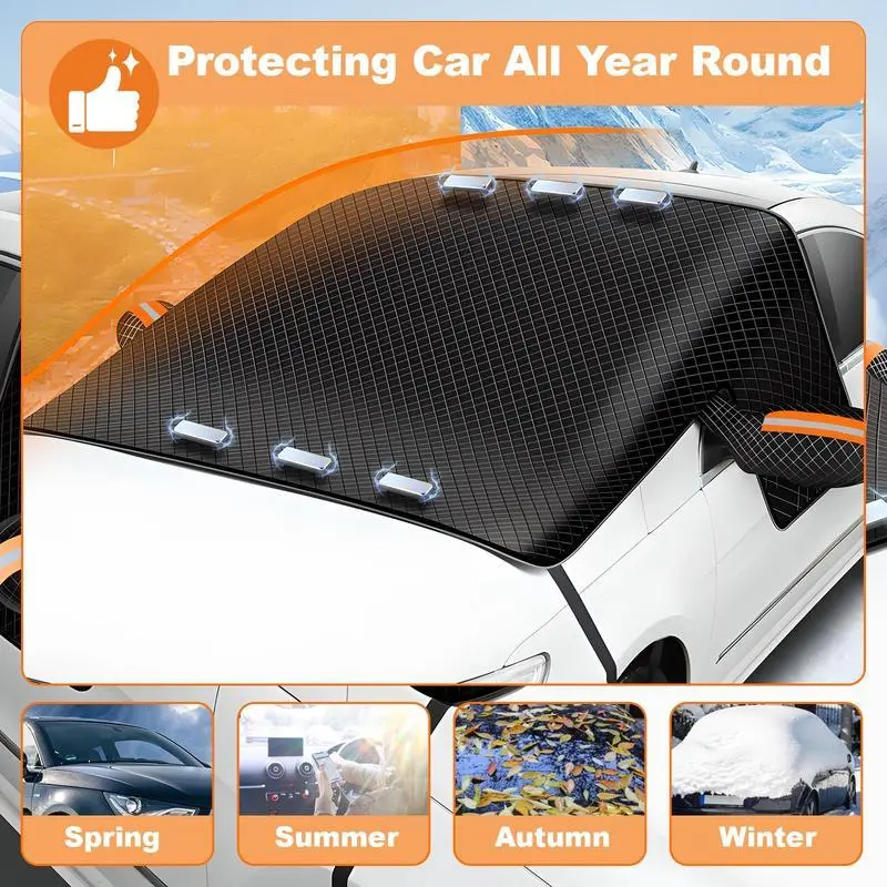 Car Windshield Snow Cover, All Season Windshield Cover, Magnetic Windshield Snow Frost Ice Cover, Heavy Duty Windproof Waterproof UV Resistant, fit for Cars, SUV, Vans, Truck,