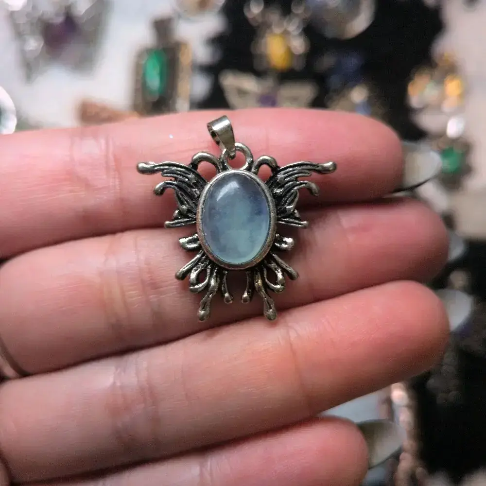 Add a touch of whimsy and magic to your accessory collection with the Witchy Necklaces. These unique necklaces feature playful designs that captures the essence of witchy whimsy, making it a perfect addition to your jewelry collection. * Whimsical Design: The necklace showcases a whimsical design that adds a playful touch to your look. * Unique Elements: The design includes unique elements that make it stand out. * Adjustable Chain: The necklace comes with an adjustable chain, allowing for a customizable fit for different neck sizes. Embrace the whimsical charm of one of these witchy crystal or enamel necklaces, and let your style shine with a touch of magic.