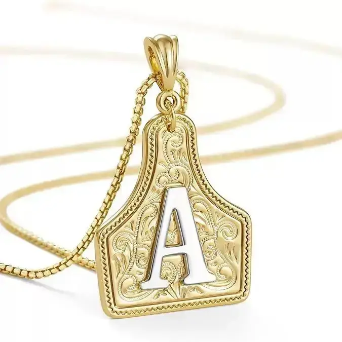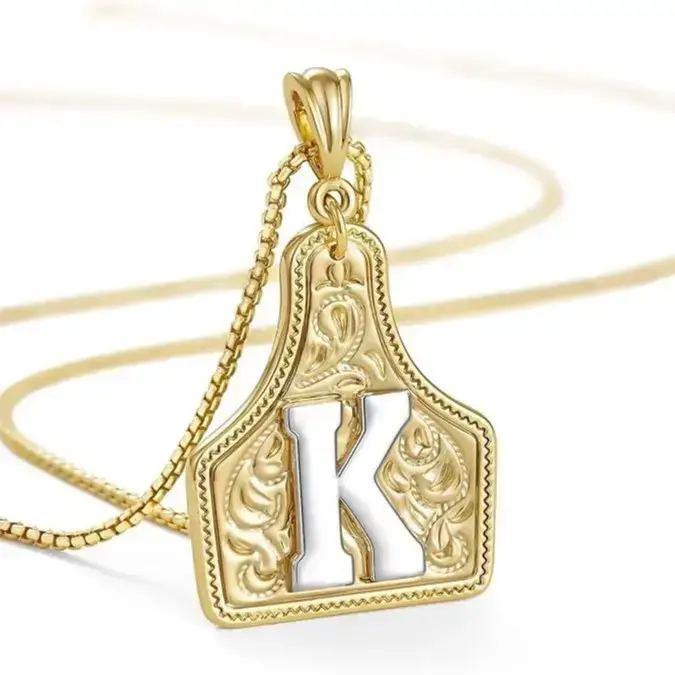 Western Cowboy 26 Letter Pendant Necklace ✨ Elevate your style with the Western Cowboy 26 Letter Pendant Necklace! This cowboy-style necklace features an embossed relief two-tone pendant. Perfect as a gift, it combines elegance with a bold cowboy aesthetic. The pendant measures 2.5cm in height and width, weighing 13G. Material and Chain Details Ideal Gift Choice This necklace is an excellent gift option. Its distinctive design and comfortable chain length make it a versatile accessory. Ideal for those who appreciate western cowboy style. 🤠