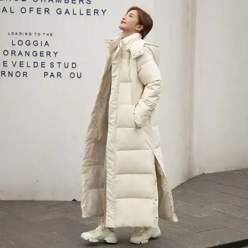 ExtraLongDoubleZipperHoodedDownCottonJacketforWomen,ThickenedandWarmWinterCoat,Waterproof