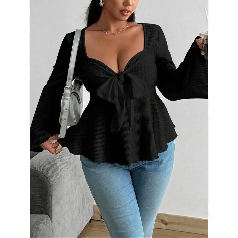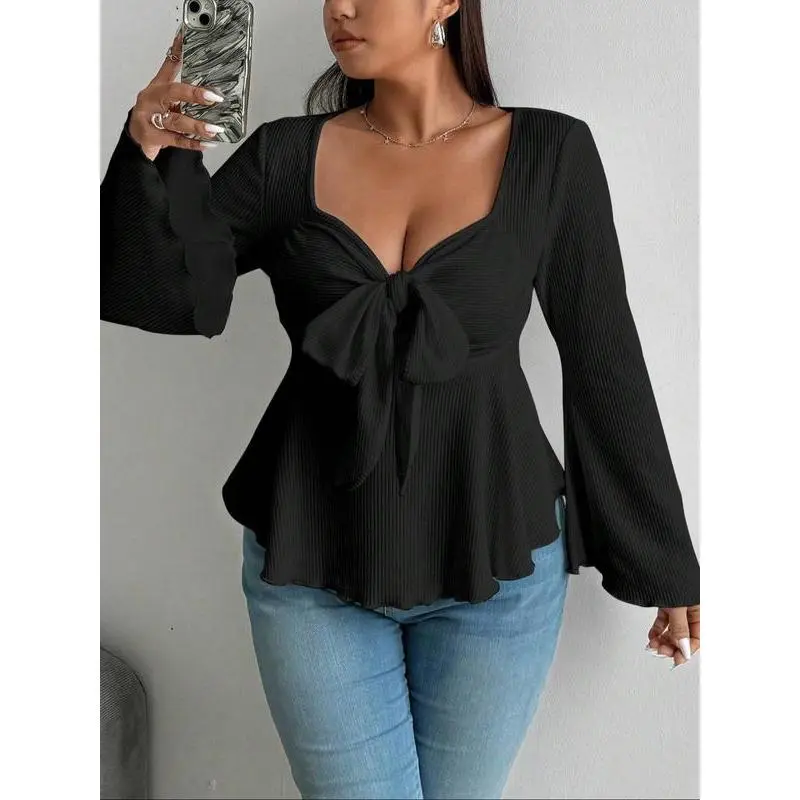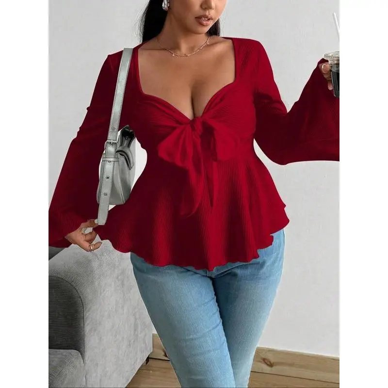 【Fabric quality】: Crafted from moderate thickness knit fabric, this T-shirt provides the warmth necessary for fall and winter seasons. 【Fitted silhouette】: The fitted style enhances the body’s natural shape, providing a tailored look that flatters various body types. 【Large size options】: Available in plus sizes, ensuring a comfortable fit for a wide range of body shapes and sizes. 【Solid color】: The T-shirt features a pure color, offering a timeless and clean aesthetic that simplifies pairing with other wardrobe pieces. 【Seasonal wear】: Designed specifically for fall and winter, this T-shirt meets the need for warmth while maintaining a modern profile.