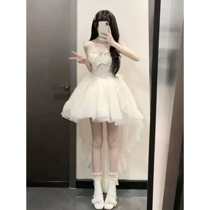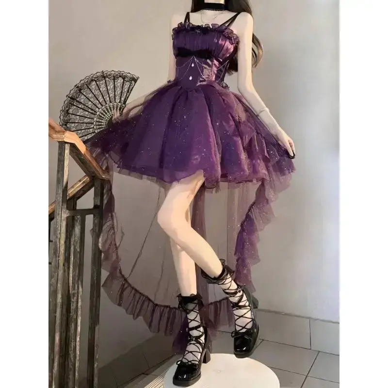 New Korean princess dress in autumn, fashionable, elegant, slim and thin, glittering, sling-tailed dress, short skirt for women Sleeveless Womenswear Formal