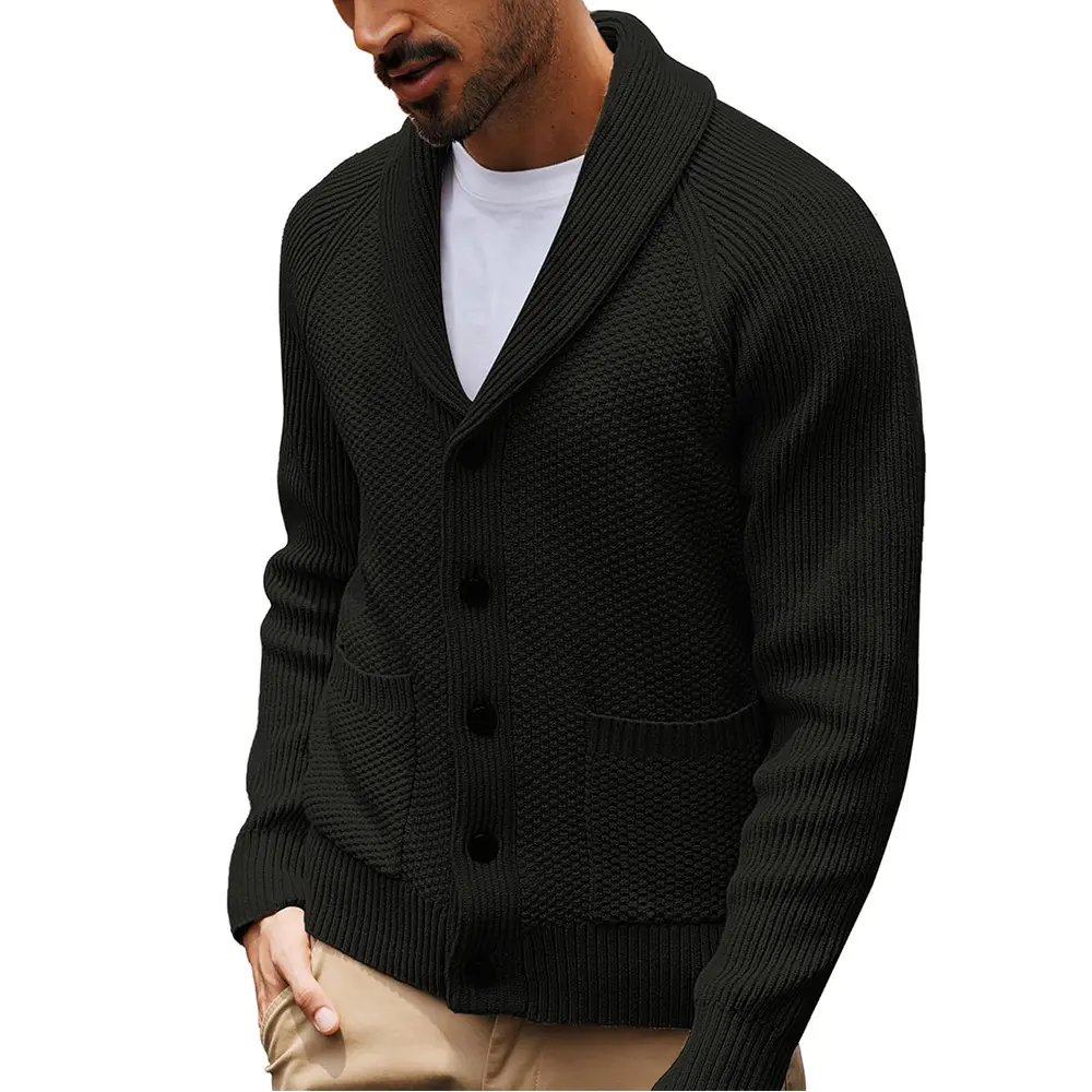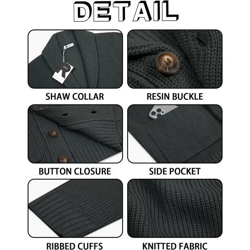 Mens Shawl Collar Button Down Ribbed Knit Chunky Casual Cardigan/Considerate details of design bring your pleasure wear feeling./Array/Array/Runcati Size Recommendation