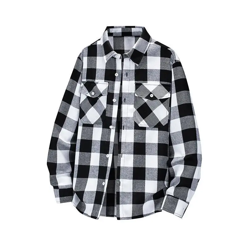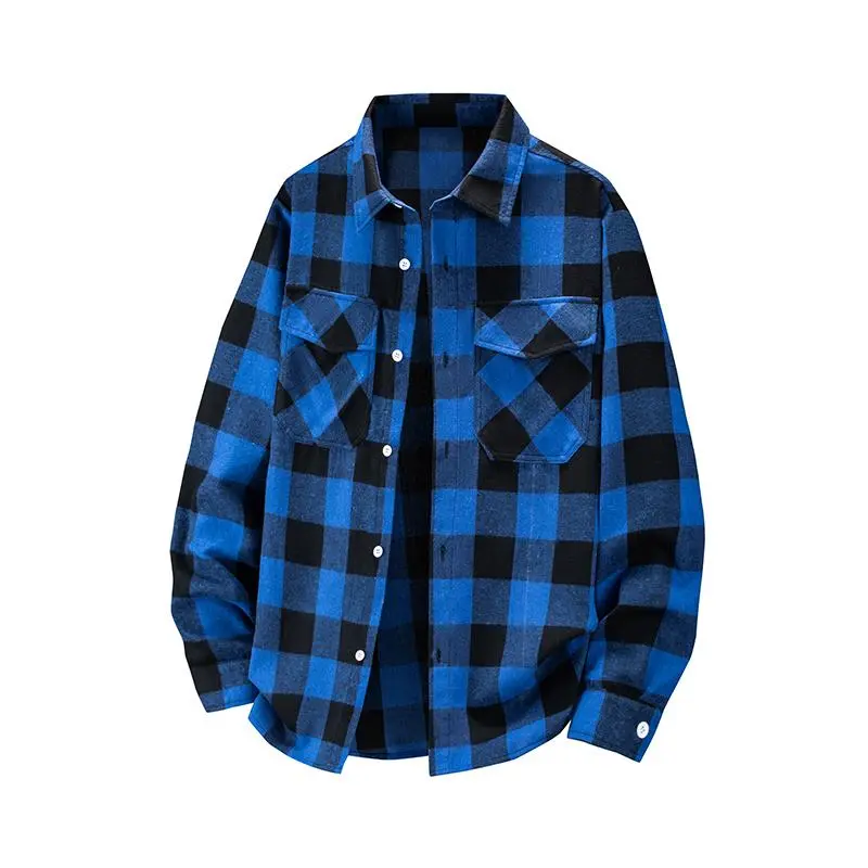Perfect Gift for Her This men's plaid shirt is a stylish choice for fathers and husbands. Featuring a double pocket design and an oversized, loose fit. The vintage style and long sleeves make it perfect for casual wear. A great holiday gift, this flannel shirt offers both comfort and style. This shirt is a versatile addition to any wardrobe.
