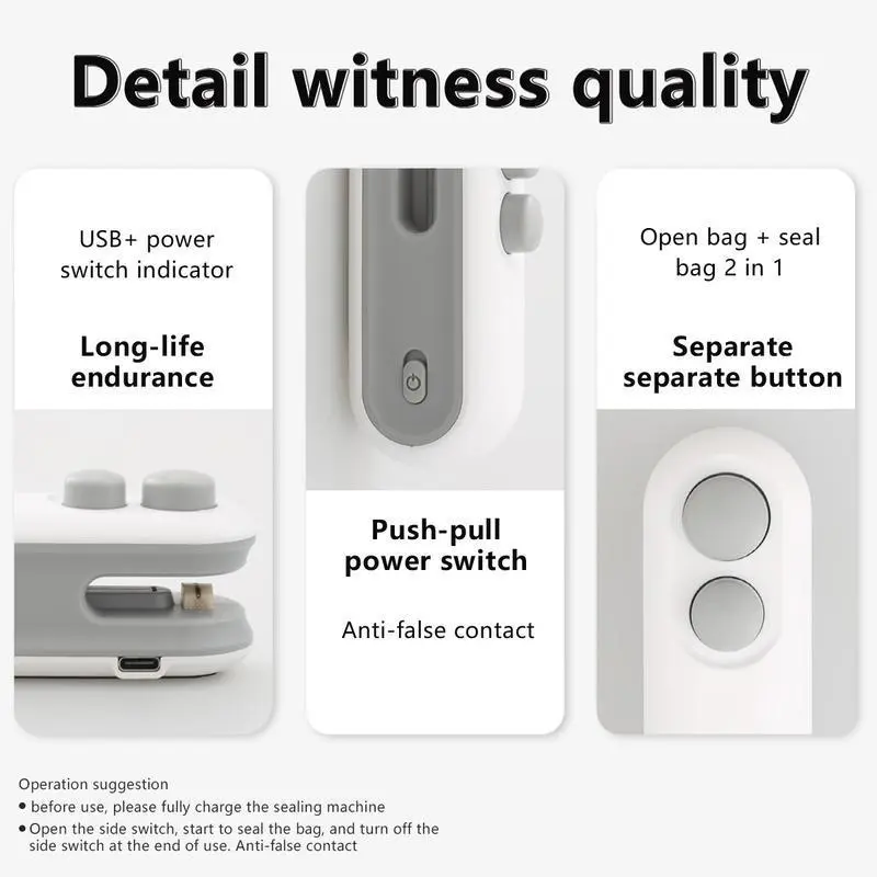 ��Durable Material��: Constructed with high-quality ABS material, ensuring long-lasting durability and resistance to wear and tear. ��Compact Size��: Designed for portability, this handheld sealing machine easily fits in your bag, making it ideal for on-the-go use. ��User-Friendly��: Simple operation allows anyone to seal various packaging types quickly, enhancing convenience in daily tasks. ��Versatile Sealing��: Effectively seals plastic bags, snacks, and other packages, keeping contents fresh and secure for longer periods. ��Reliable Performance��: Engineered for consistent sealing results, providing peace of mind that your food and items are properly preserved.