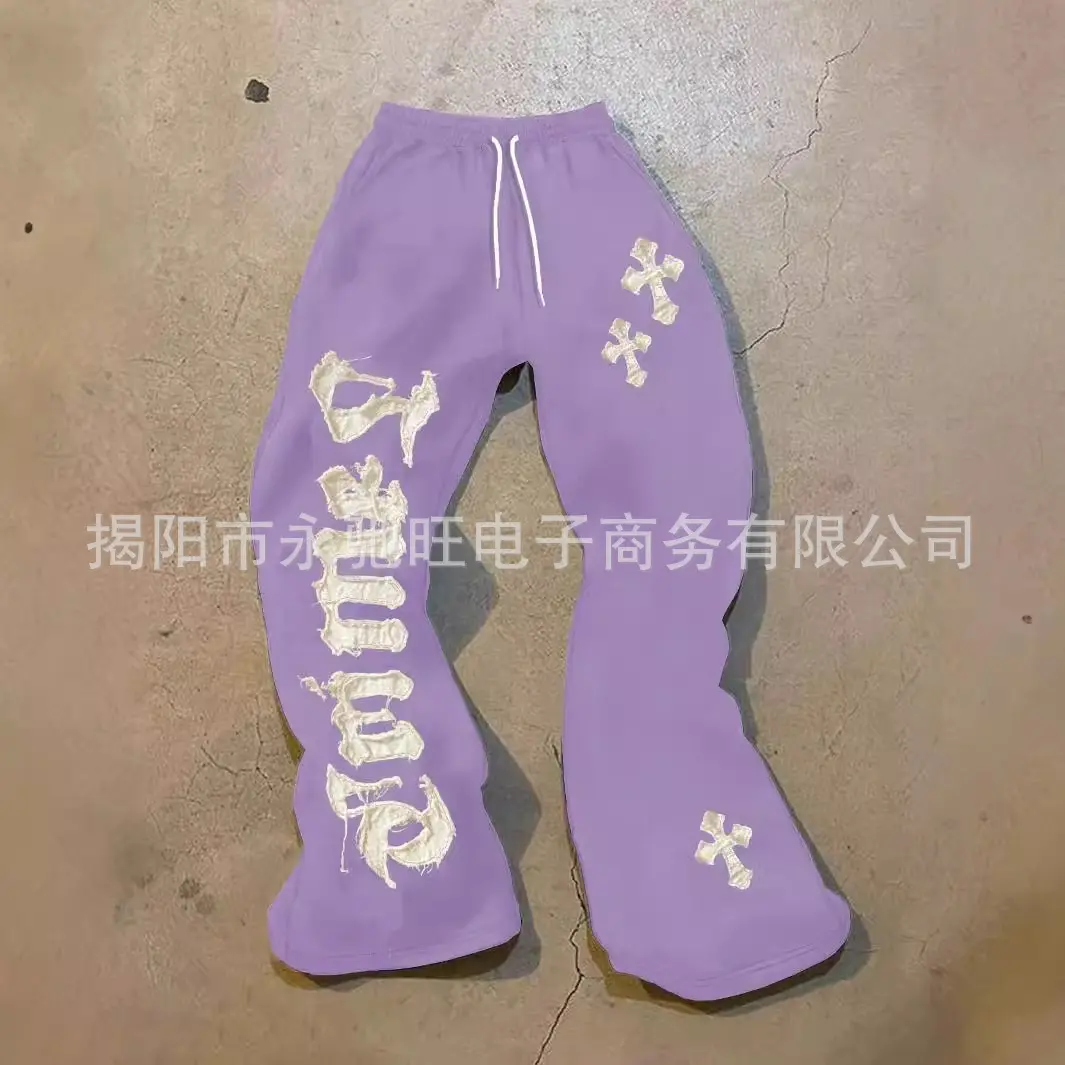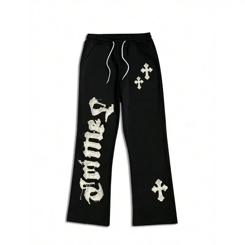 Plus Size Men's Cross & Letter Applique Drawstring Waist Sweatpants Going Out Street Wear Black Sweatpants, For Husband, Boyfriend Gifts pantaloons slacks pants straight fit chinos benjy dad