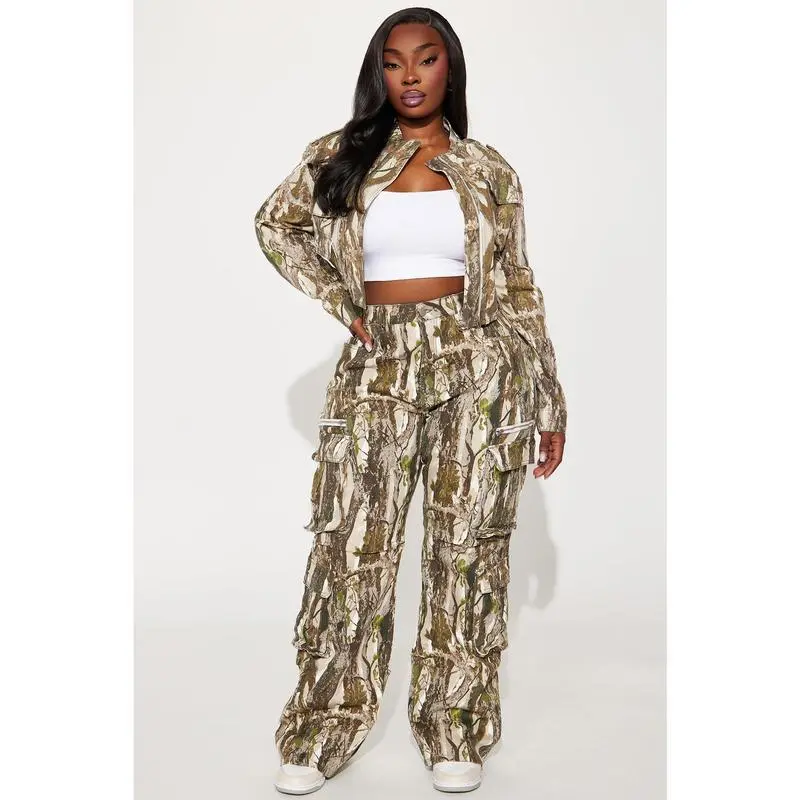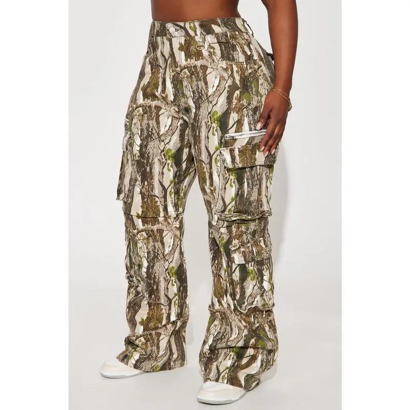 Women's Camo Cargo Pants Wide Leg Camouflage Army Fatigue Sweatpants with Flap Pockets Streetwear In Women's FashionGift