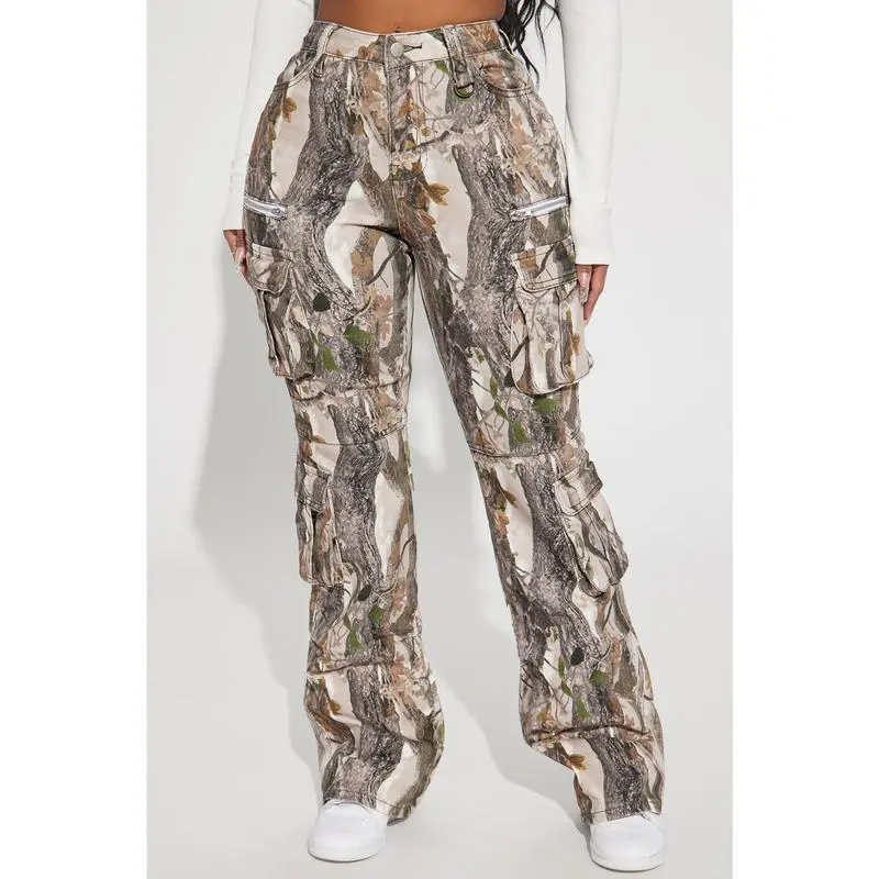 Bree Camo Stretch Cargo Jean - Olive/combo