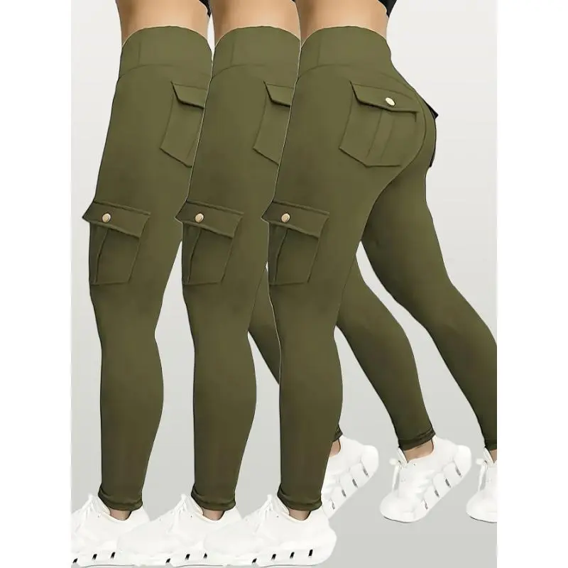 3pcs Women's High-Waisted Yoga Pants with Hip Lift & Pockets - 90% Polyester 10% Elastane Stretchy Workout Leggings Sports Bottoms Pilates Outfits