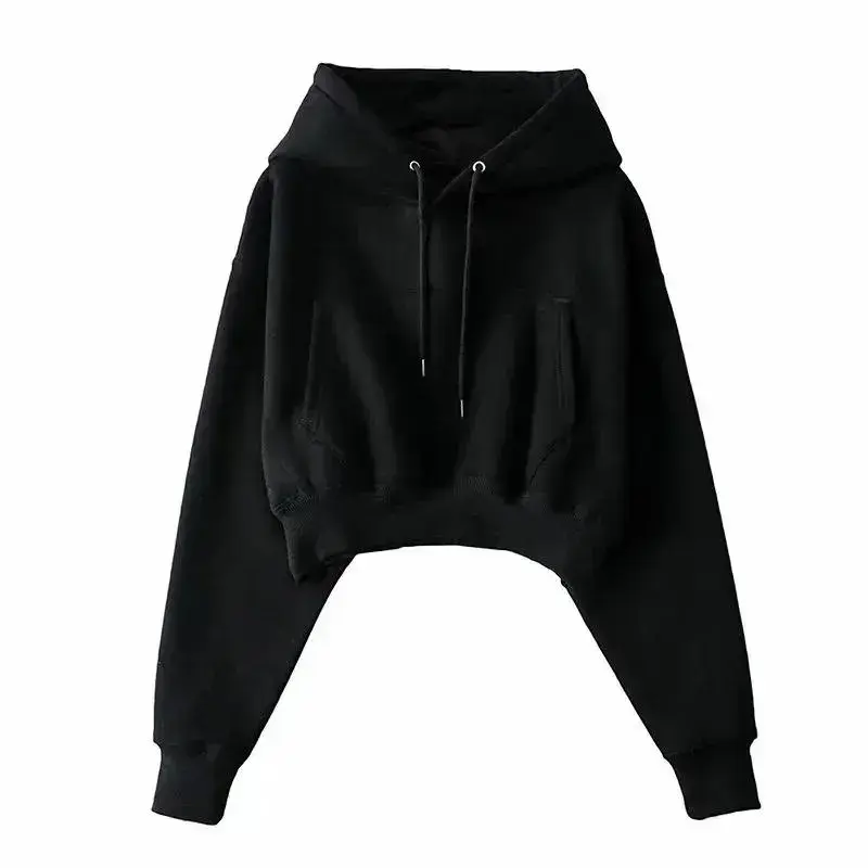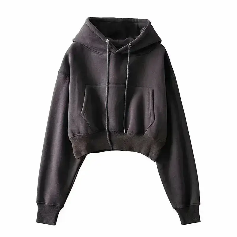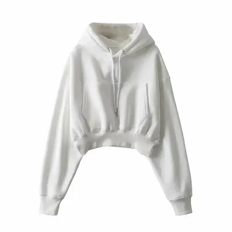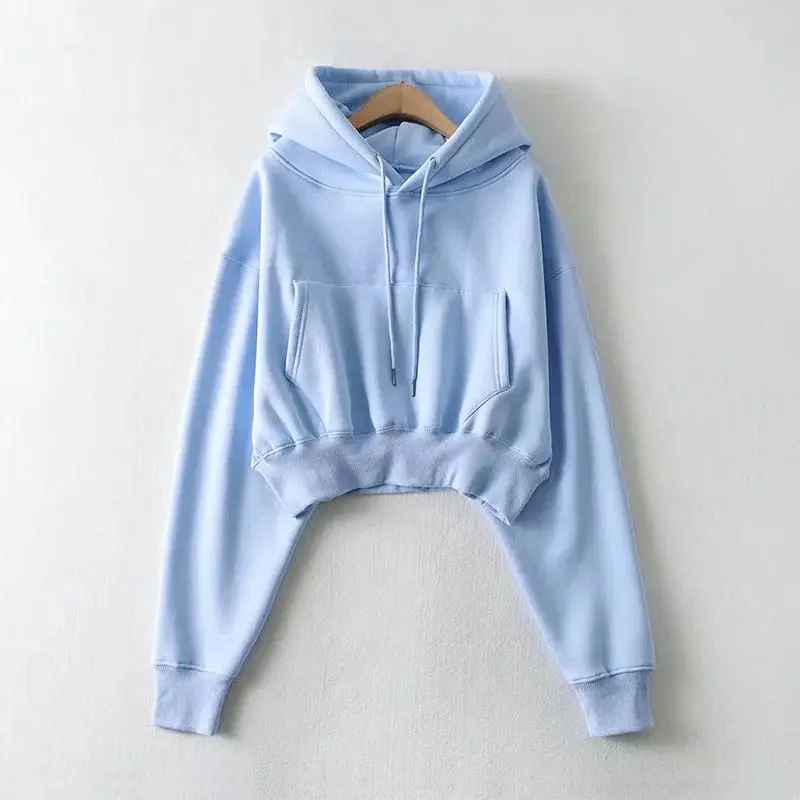 Women Cropped Hoodies Sweatshirts Blank Girls Solid Casual Loose Crop Top Hooded Sweatshirts