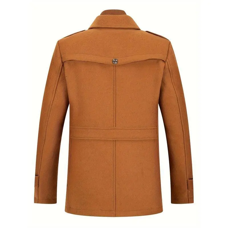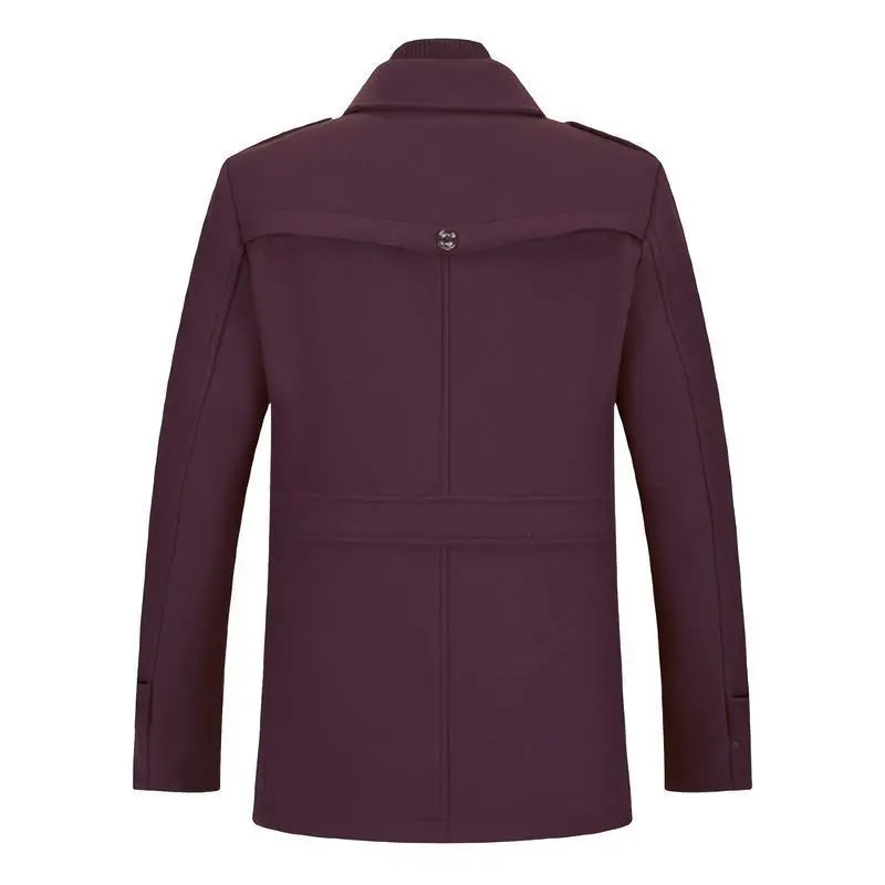 Men's Stand Collar Wool Blend Pea Coats With Removable Inner Collar Single Breasted Overcoat