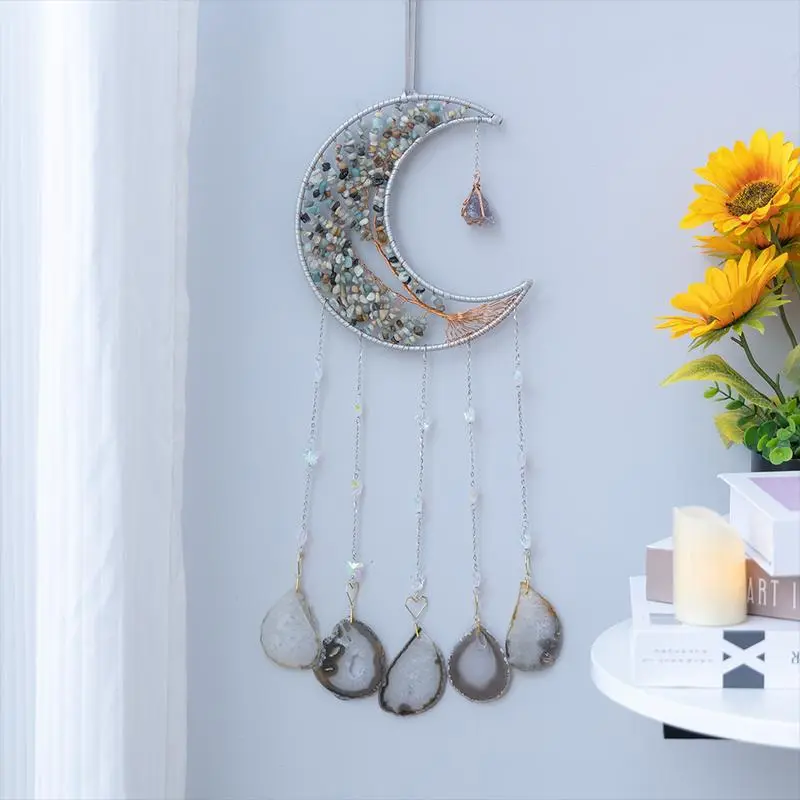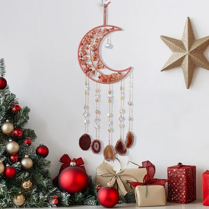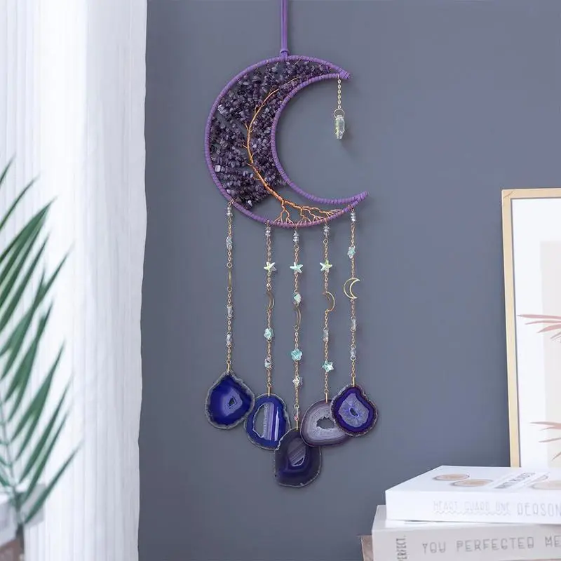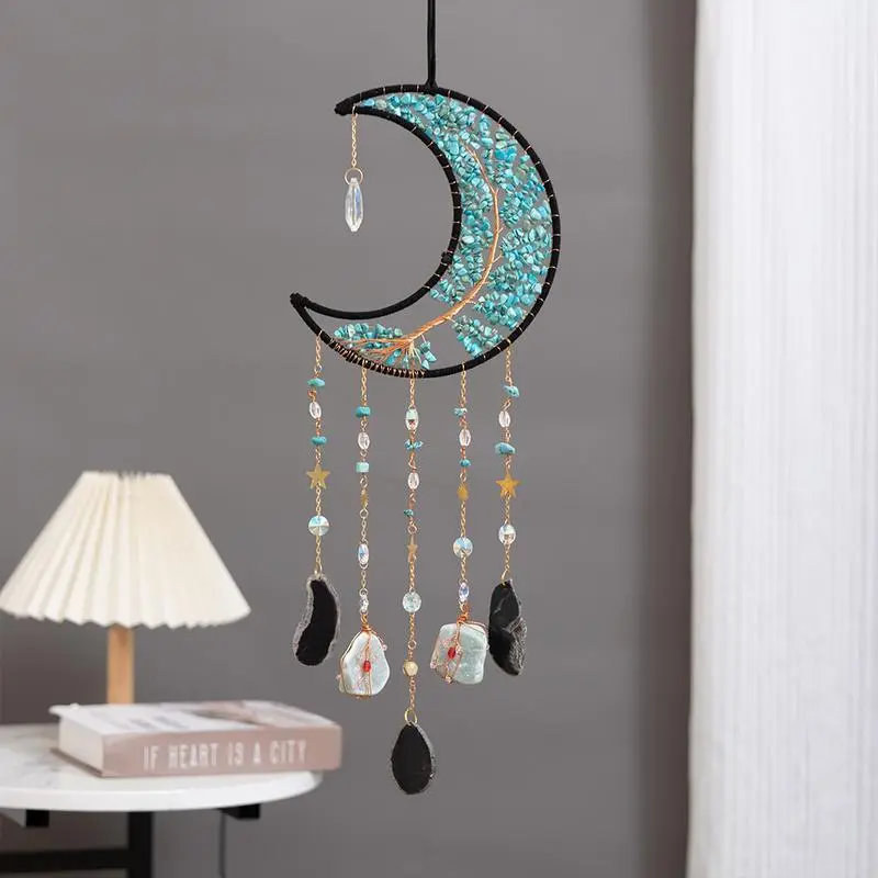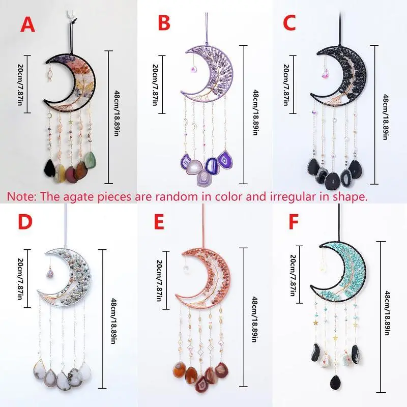 Crystal Tree of Life Dream Catcher, Moon Large Agate Pendant, Handmade Home Decor, Creative Christmas Gift for Friends