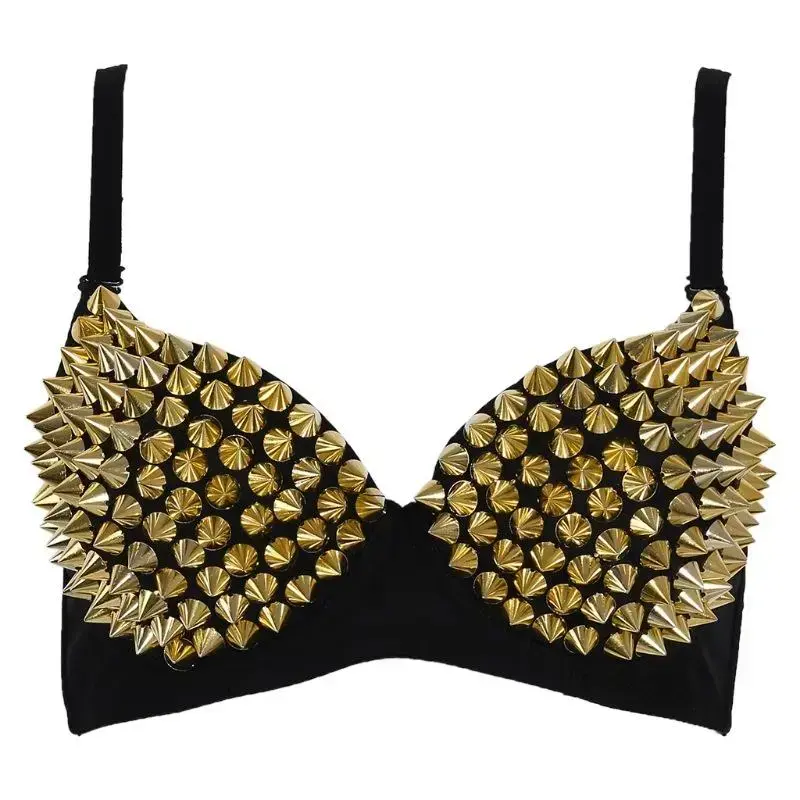 Rivet Bra Lingerie Punk Bar Stage Costume DS Belly Dance Performance Outfit Rhinestone Sparkling Beads Womenswear Basic