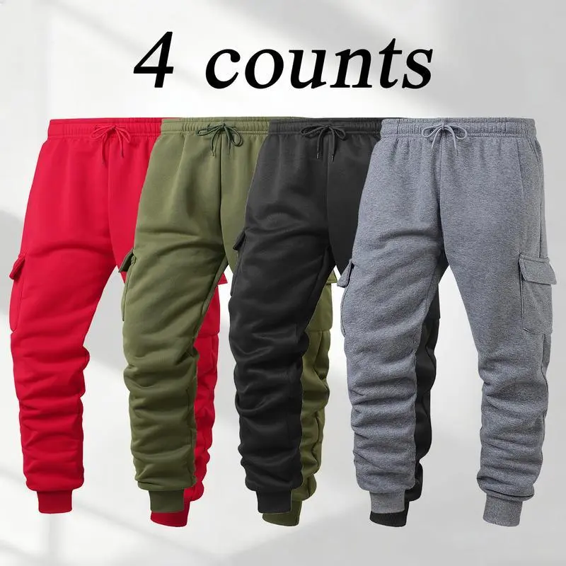 ?? Men's 4-Piece Fleece-Lined Joggers ?? Material and Care: These men's fleece-lined joggers are a versatile choice for fall and winter. They offer warmth, comfort, and convenience with their multiple pockets and drawstring cuffed ankles. Made from polyester, they are easy to care for. Perfect for everyday wear. ??