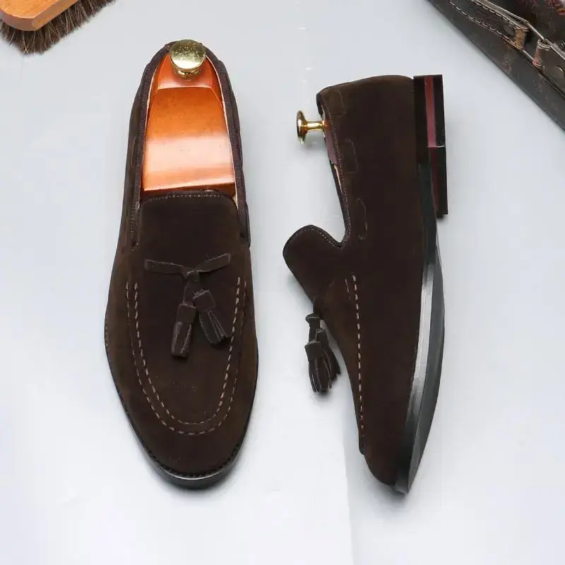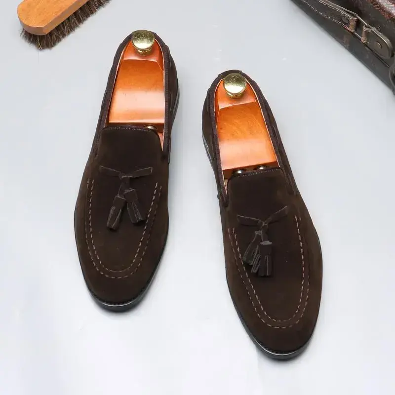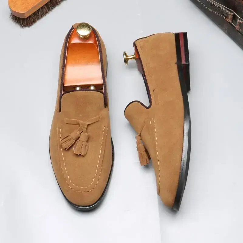 Men's British Style Slip-On Loafers with Tassels – Casual Leather Shoes