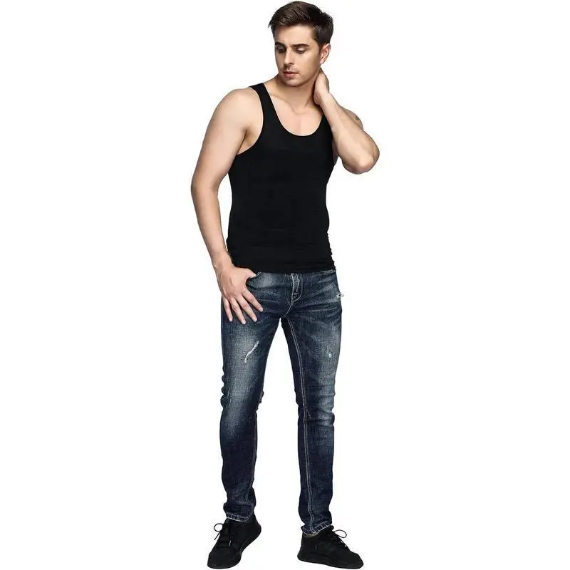 5. Mens 5 Pack Body Shaper Slimming Tummy Vest Thermal Compression Shirt Tank Top Shapewear Padded SingletGift