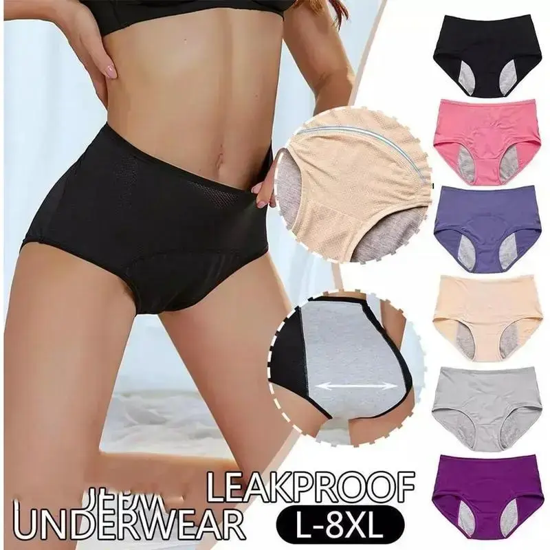 ??[Pelvic Floor Support & Leakproof Underwear]The soft and elastic double-layer cloth belt is just right on the waist, it won't move easily and won't be tight.The high-rise design and stretchy fabric moderate tummy for a less baggy look, and they slip on and off with ease ??[Full Coverage & Comfortable Leg Opening] The full coverage panties for women fully cover your buttocks, and the upward design shows the buttocks well.The leg openings are wrapped with cotton elastic that doesn't cut in the thigh area nor pinch in the hip area ??[Premium Cotton and Spandex Blend] Leakproof panties for women is made of 92% nylon, 8% spandex with leakproof liner Premium materail provides comfort, high elastic, moisture wicking, soft and skin-friendly wearing experience. ??Machine Washable and Fade-Resistant: Easy to Care for and Maintain Shape, giving you confidence and peace of mind while flattering all body types. ??Leakproof Underwear for Women---Suitable to wear under any clothes.Help you spend a relaxing and enjoyable time.Women's underwear is a perfect choice for women, moms, grandmas. Product Description Please refer to our size chart carefully Product Description: 1.Product name: Leakproof Ladies Underwear 2.Product size: L, XL, 2XL, 3XL,4XL,5XL,6XL,7XL,8XL Product material: 92% nylon +8% spandex Features: 1.High-waisted design: This underwear features a high-waisted design, providing full coverage and support. 2.Comfortable material:The fabric of this underwear is made from cotton, which is soft, comfortable and breathable. Shipments include: 8 pcs Underwears