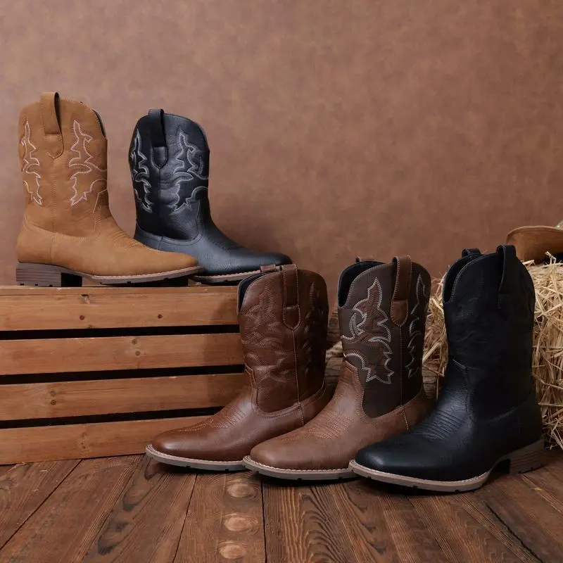 [Comfort & Style Unleashed]Eleet mens cowboy boots offer a seamless blend of comfort and style.The soft, breathable insole ensures lasting coziness from morning to night, making them the great choice for any occasion.For the ideal fit, consult our size chart.Your feet will thank you for choosing these unparalleled cowboy boots men. [Exquisite Embroidery Elegance]Our botas vaqueras para hombre are meticulously hand-stitched and crafted, featuring a blend of classic embroidery, patterns, and country colors.Step into a world of elegance with our embroidered men's cowboy boots, adding a vintage touch that captures the essence of Western cowboy fashion and turns heads wherever you go. [Premium Faux Leather & Professional Inspection]Eleet black cowboy boots men undergo rigorous quality checks to ensure unmatched excellence.Crafted from premium faux leather with a timeless square toe, they not only boost flexibility but also stand strong in challenging conditions, becoming an essential partner in your daily journey. [Versatile for Any Occasion]Our square toe boots for men select from timeless brown and black choices, available in sizes 6.5 to 15. Whether it's a party, wedding, music festival, or any special event, our men's cowboy boots are the great fit. You'll find yourself reaching for them every time you want to add a touch of glamor to your outfit. [Ideal Presents]These black western boots for men for husbands, friends, fathers and anyone special. These boots combine style, quality, and wallet-friendly prices, making them the ideal choice for comfort-conscious individuals. We want more people to wear our ankle boots.