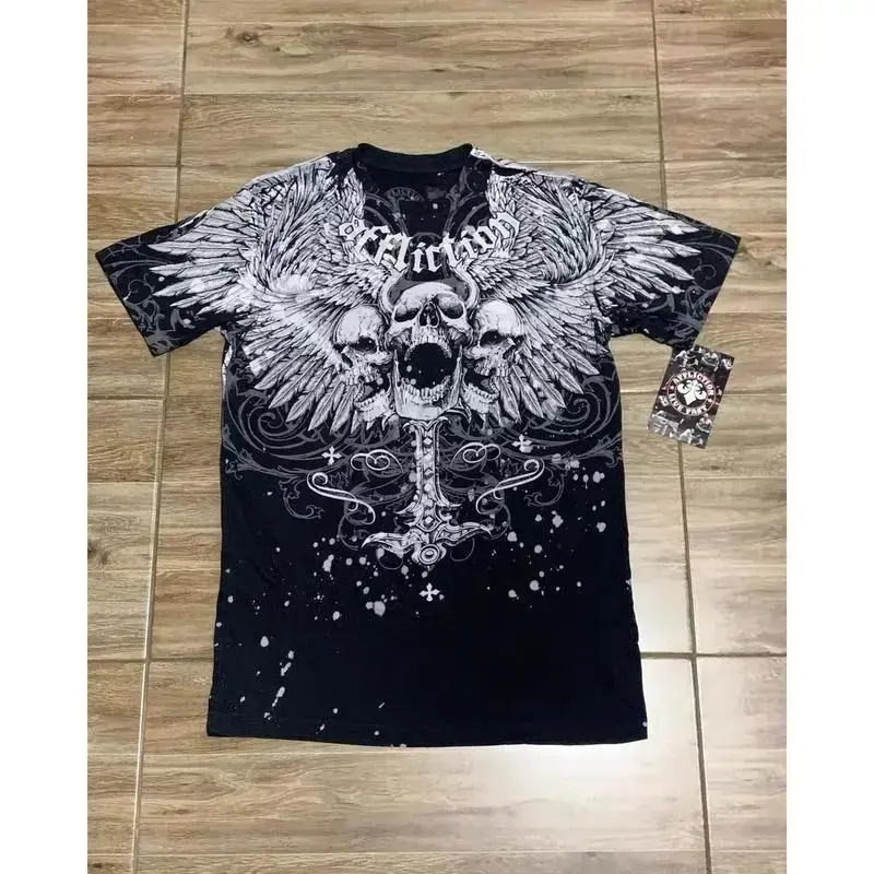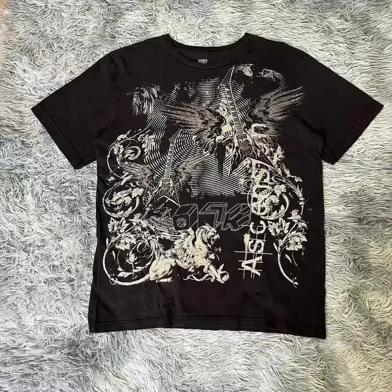 2026 Men's New Pattern Printed Skull T-Shirt Top Versatile Casual Fashion Trend Round Neck Short Sleeve Gothic Style Streetwear Cotton Fabric Black Menswear good graphic tees hell star funny tshirt men graphic tees