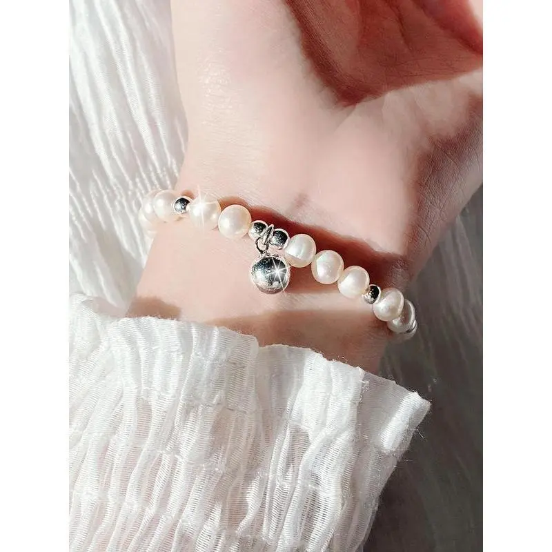 S925 Sterling Silver Natural Freshwater Pearl Bracelet, Fashionable Beaded Bracelet for Women & Girls, Trendy All-match & Exquisite Jewelry for Birthday GiftGift