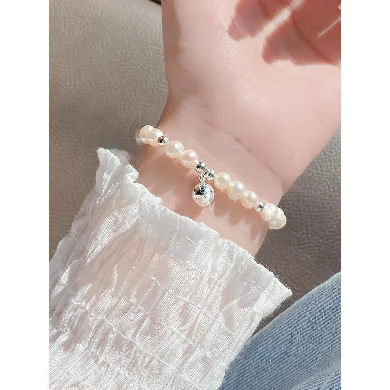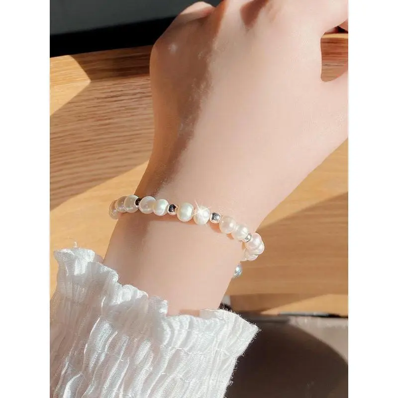 S925 Sterling Silver Natural Freshwater Pearl Bracelet, Fashionable Beaded Bracelet for Women & Girls, Trendy All-match & Exquisite Jewelry for Birthday Gift