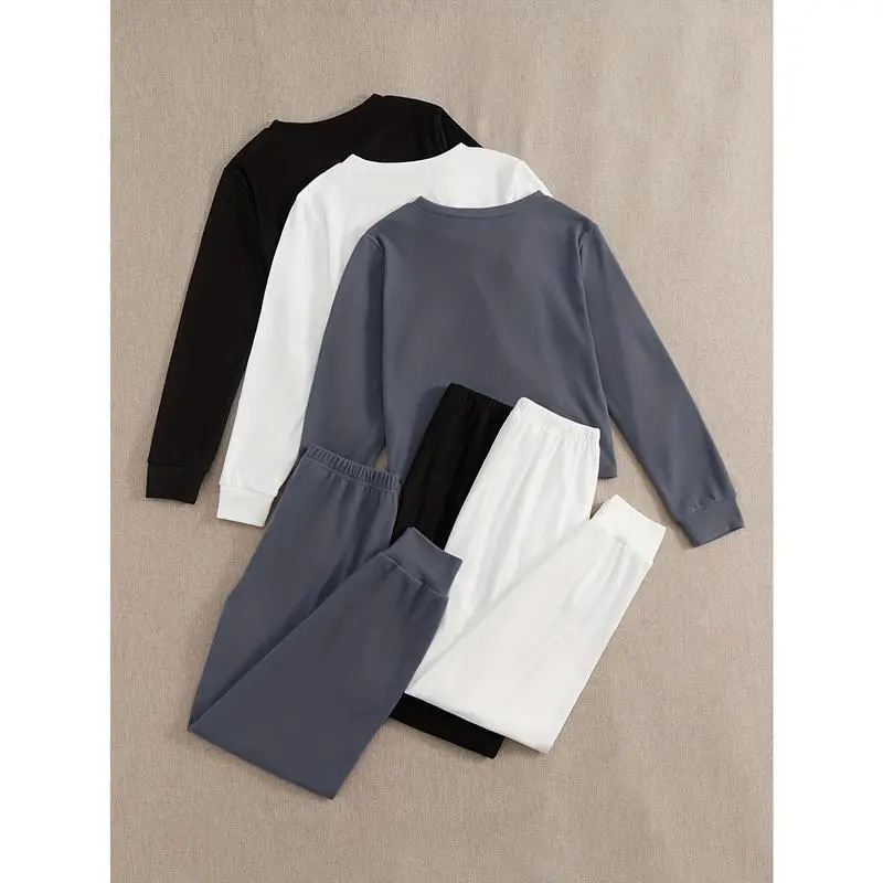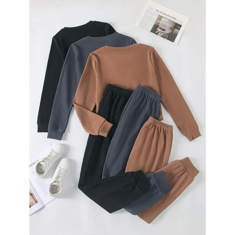 3 Sets of Cozy Women's Solid Casual Lounge Sets - Long Sleeve Round Neck Tops & Jogger Pants for Fall - Comfortable Relaxed Fit, Soft Fabric, and Versatile Style Clothing Womenswear Suits CrewneckGift