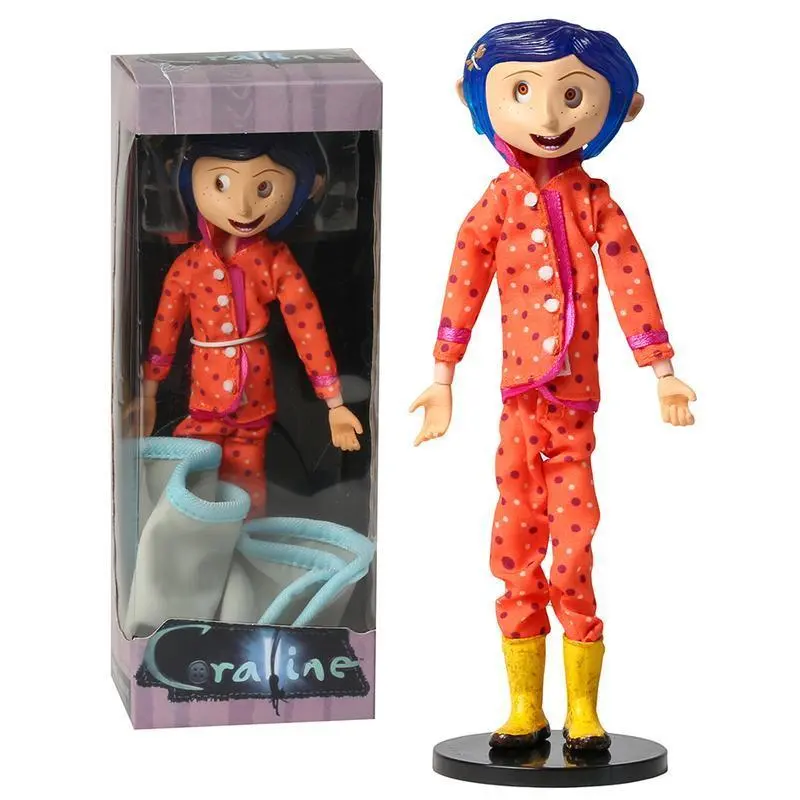 NECA Coraline in Striped Shirt / Yellow Raincoat 7" ABS/PVC Action Figure Toy Doll