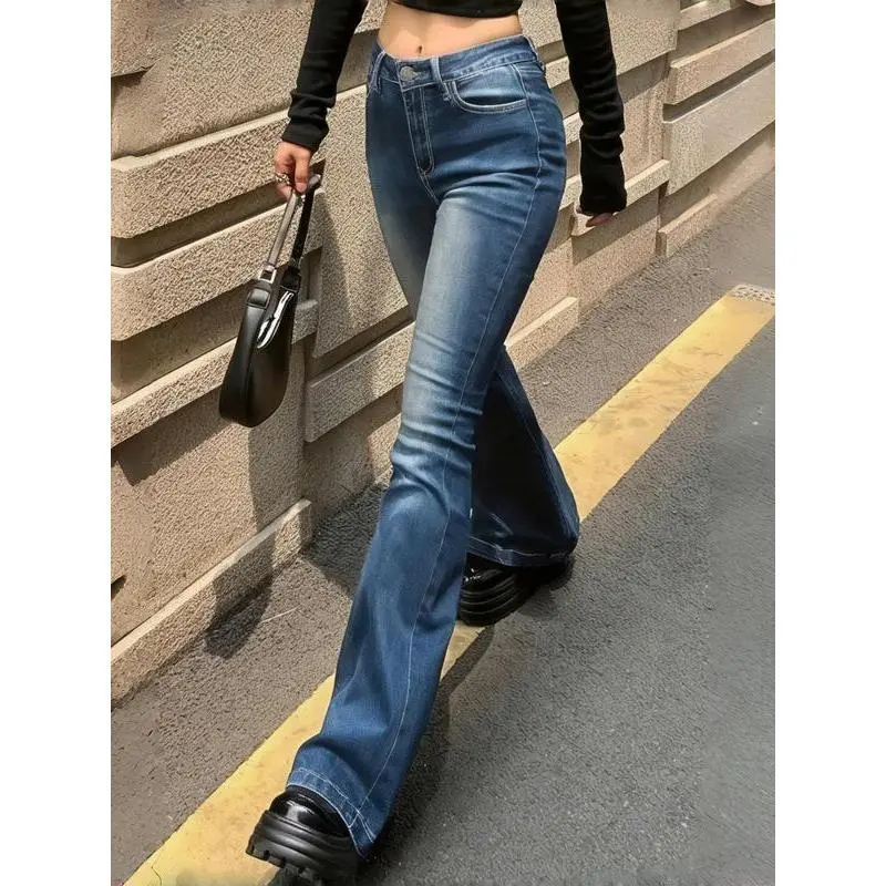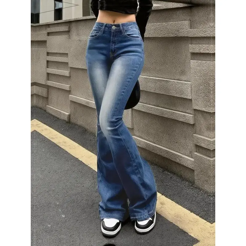 ??High Waist??: Features a high waist that accentuates the silhouette, providing a flattering fit that complements various body types. ??Flared Leg??: The flared leg design creates a unique profile, making it a standout choice among traditional jeans, perfect for a retro look. ??Medium Stretch??: Crafted with medium stretch denim, these pants offer a balanced fit that allows for ease of movement without sacrificing shape. ??Button Closure??: Equipped with a classic button closure, this piece combines timeless elements with modern flair, enhancing its appeal for daily wear. ??Seasonal Wear??: Ideal for multiple seasons, these jeans can easily transition from fall to winter, catering to varied style preferences year-round.