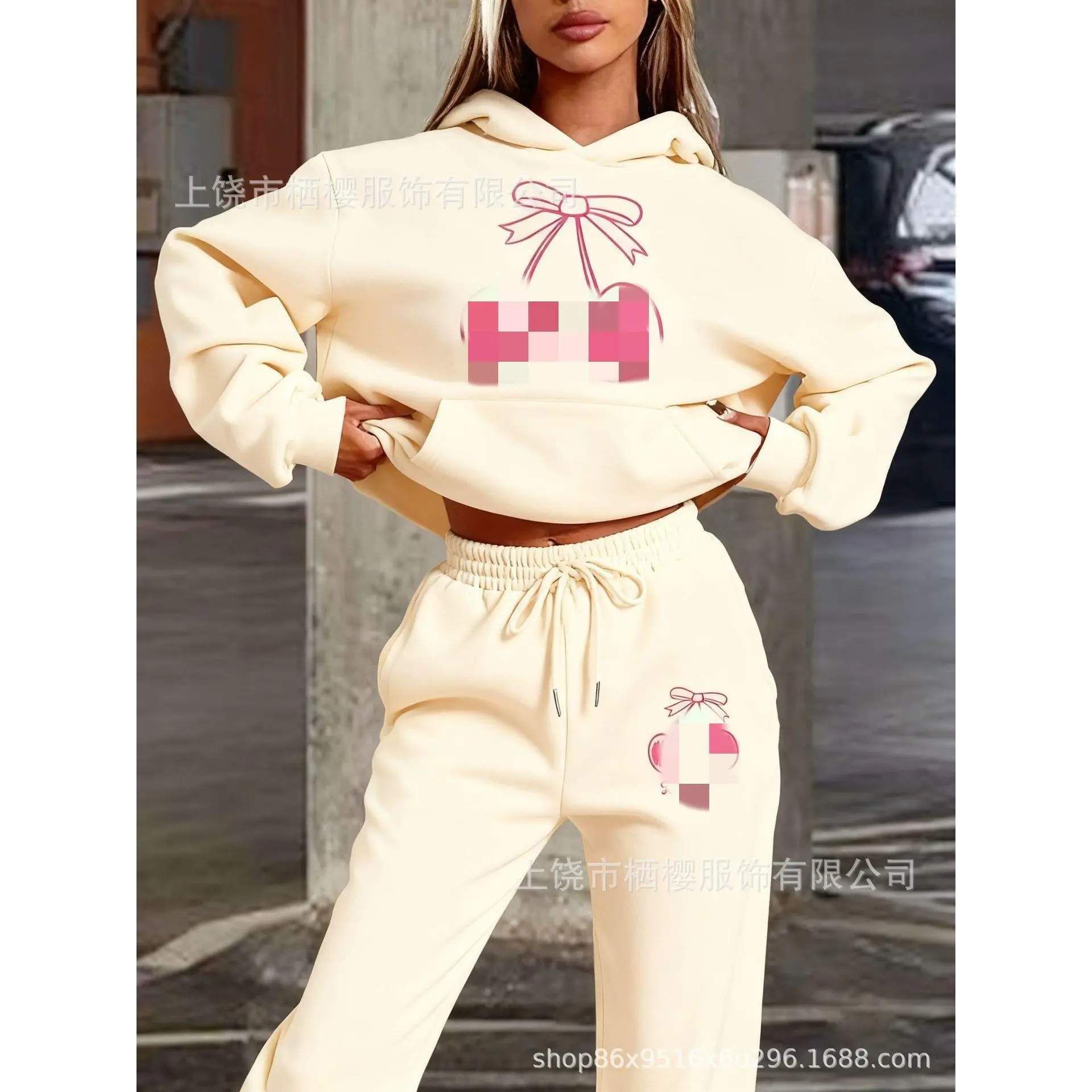 【Charming Prints】: Featuring unique cherry and bow tie graphics, it brings a playful and romantic aesthetic to your wardrobe. 【Seasonal Wear】: Designed for fall and winter, this hoodie set combines warmth with a delightful visual appeal. 【Loose Fit】: Offers a relaxed, roomier fit that allows for easy movement throughout your daily activities. 【Durable Material】: Crafted from moderate thickness knit fabric, ensuring durability while maintaining a soft, cozy feel. 【Easy Care】: This machine-washable set simplifies laundry, allowing for convenient maintenance without compromising its charm.