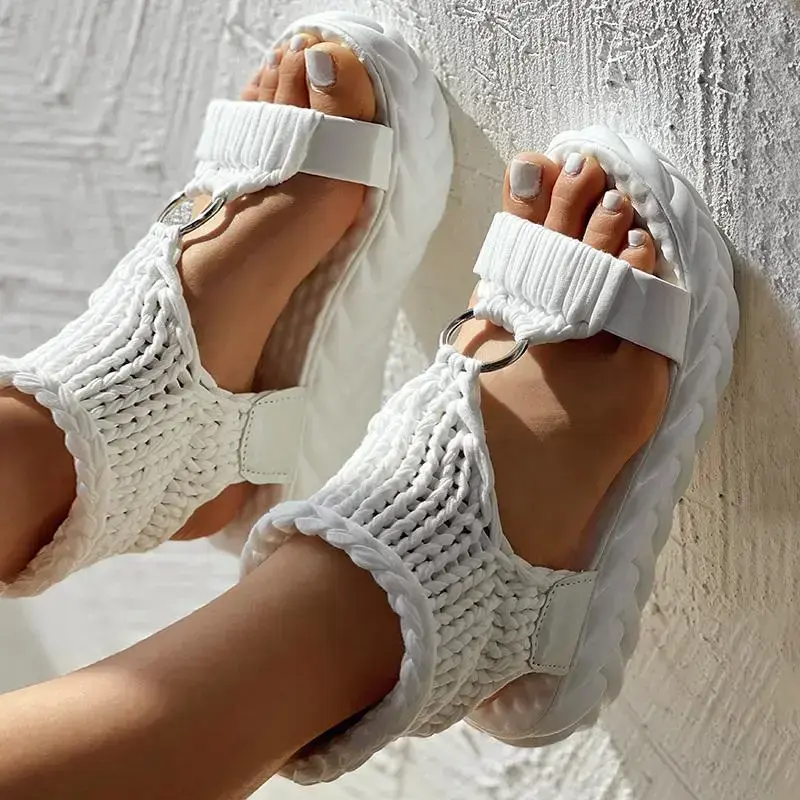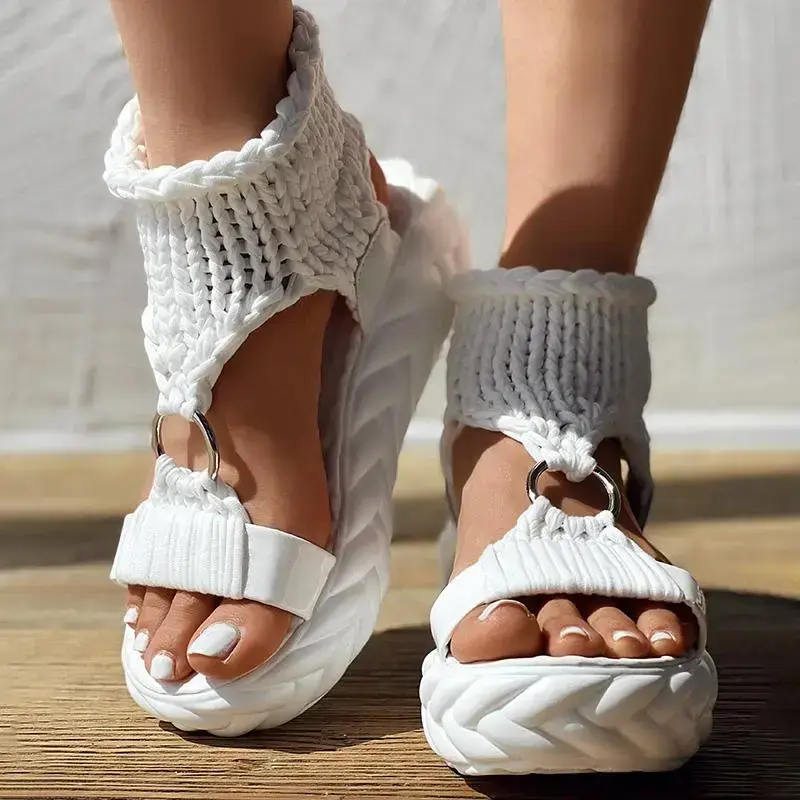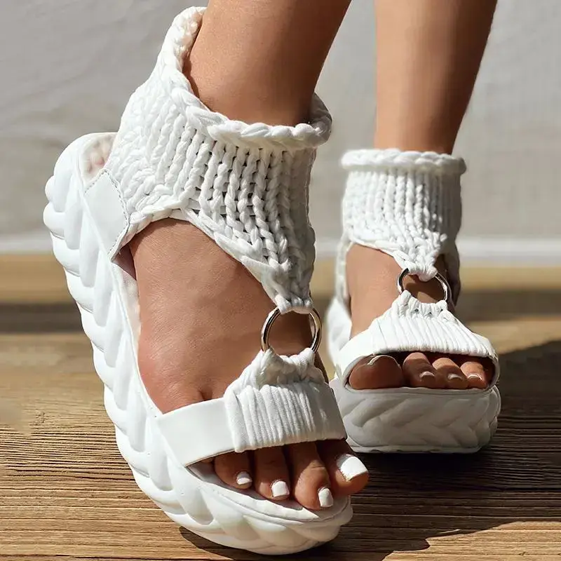 Braided Knit O-Ring Cutout Platform Sandals sandals(gift)