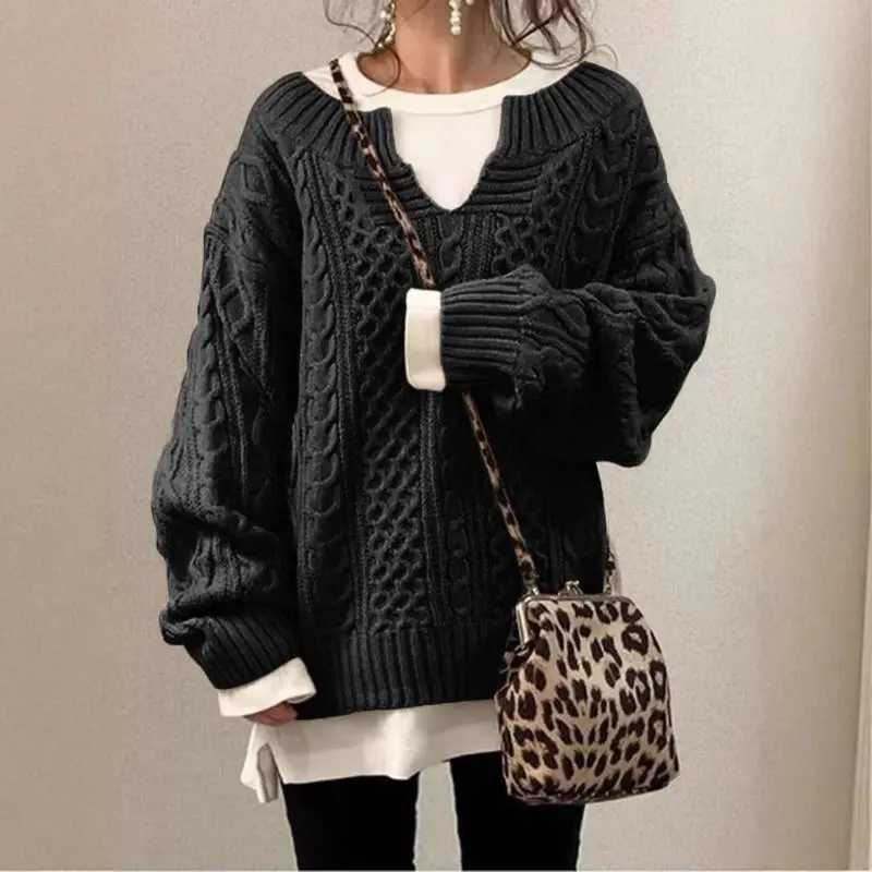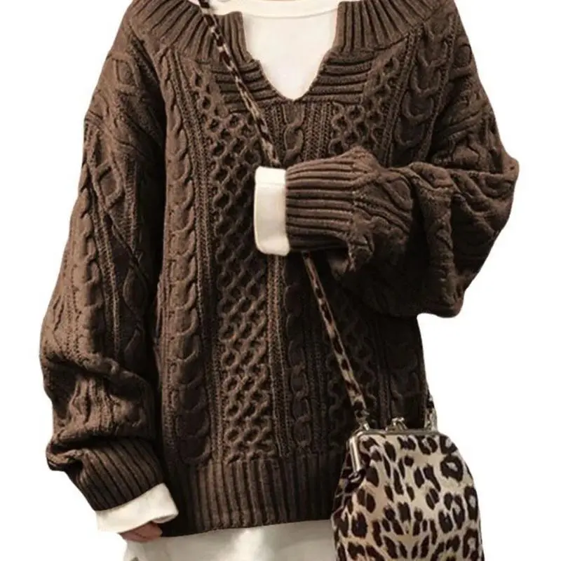 1pcs Womens V Neck Sweaters Long Sleeve Cable Knit Pullover Jumper Tops Casual Winter Fall Chunky Knitwear Outwear ​         TreeSoul Couture