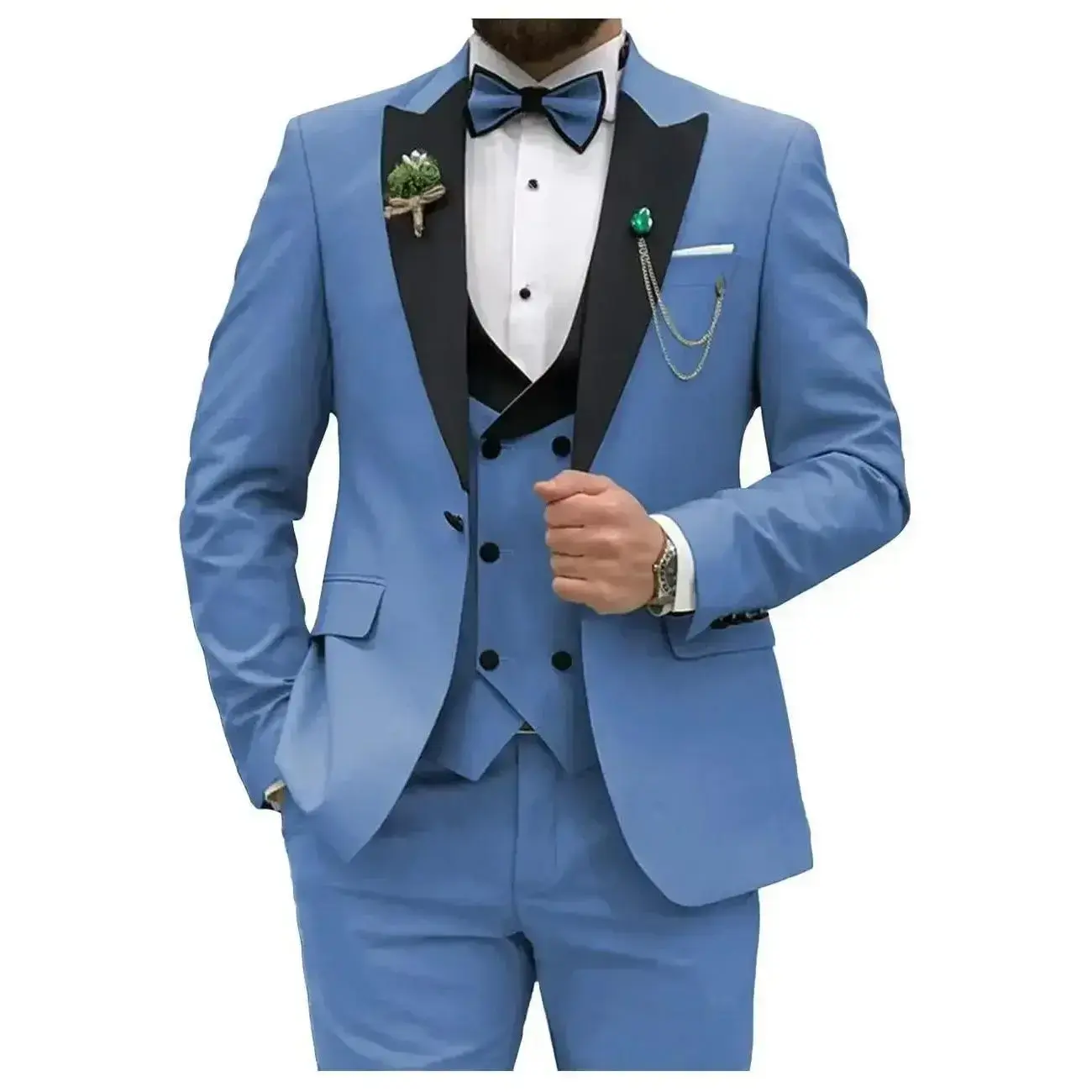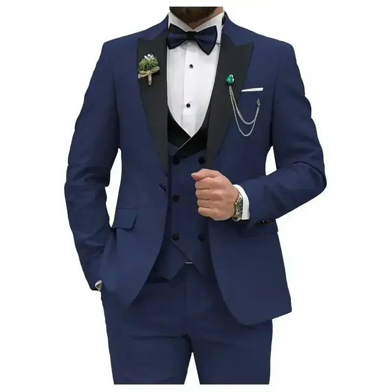 Blue Men Suits Slim Fit 3 Piece Double Breasted Suit Men Wedding Prom Party Business(Blazer + Vest + Pants) Wedding Suits for Men