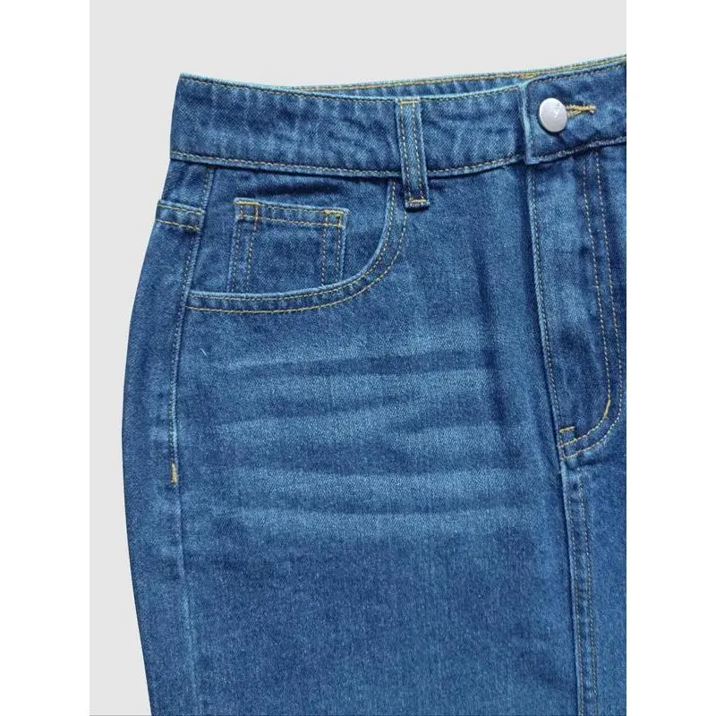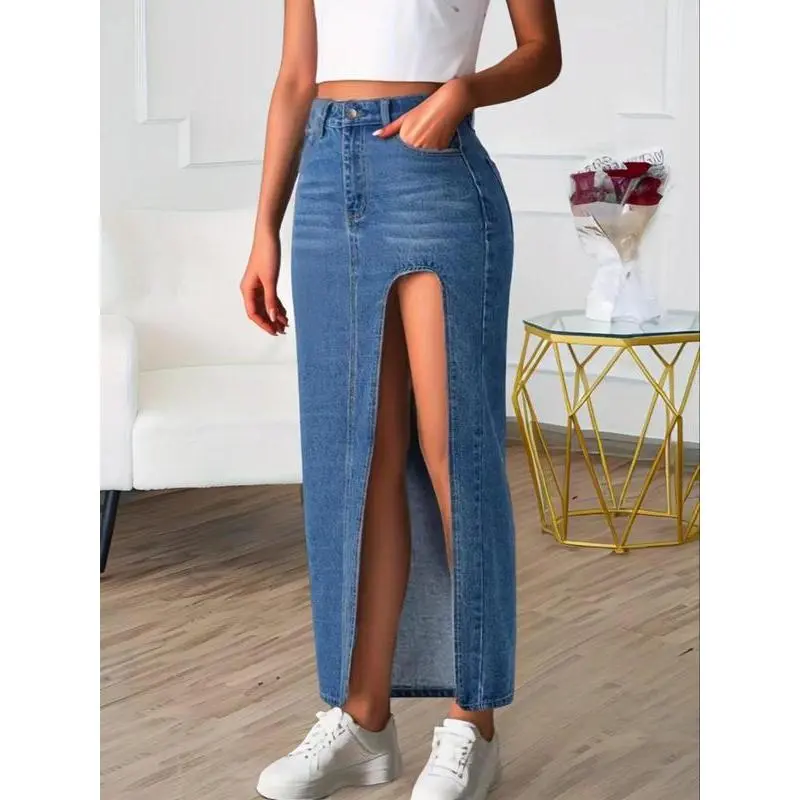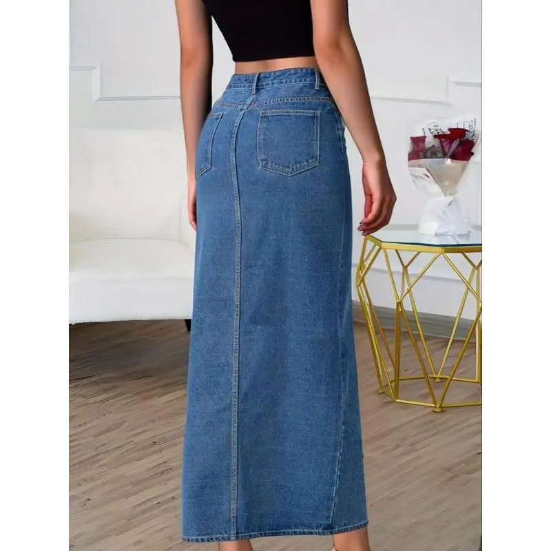 Women's Split Thigh Denim Skirt, Street Fashion Skirt, Casual Pocket Button Long Skirt for Daily Wear, Ladies Bottoms for All SeasonsGift