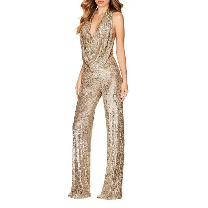 Women Sleeveless Sequined Glitter Jumpsuit Womenswear Overalls Roses BasicGift
