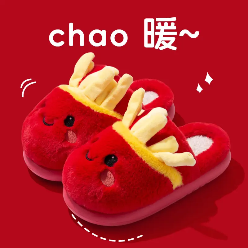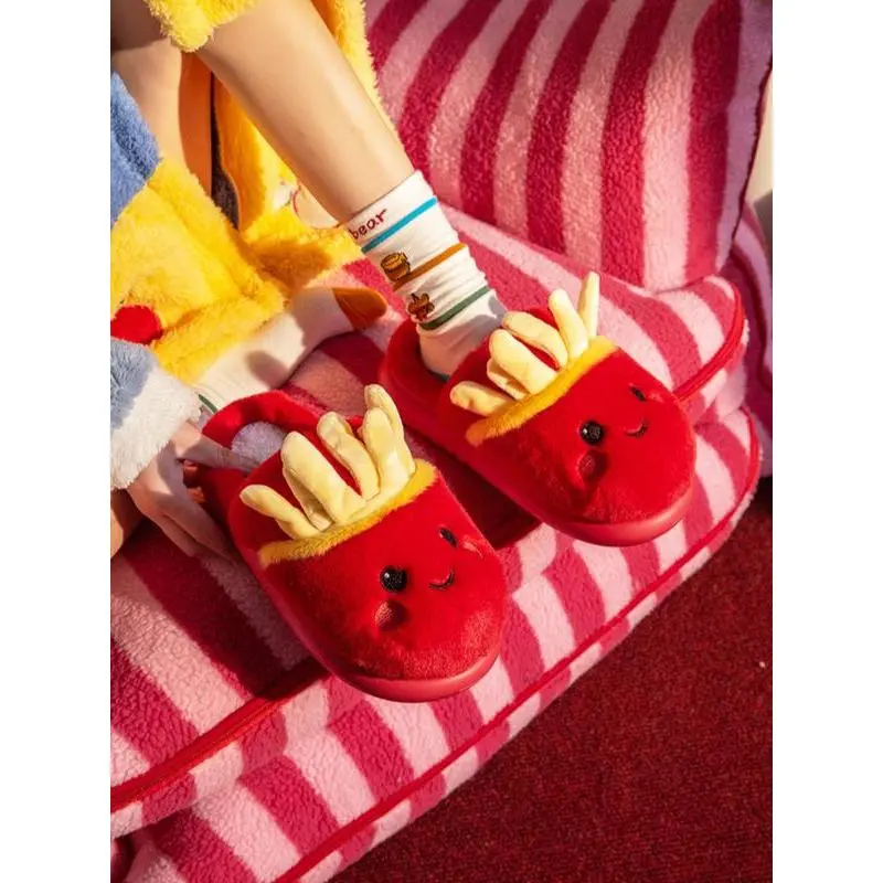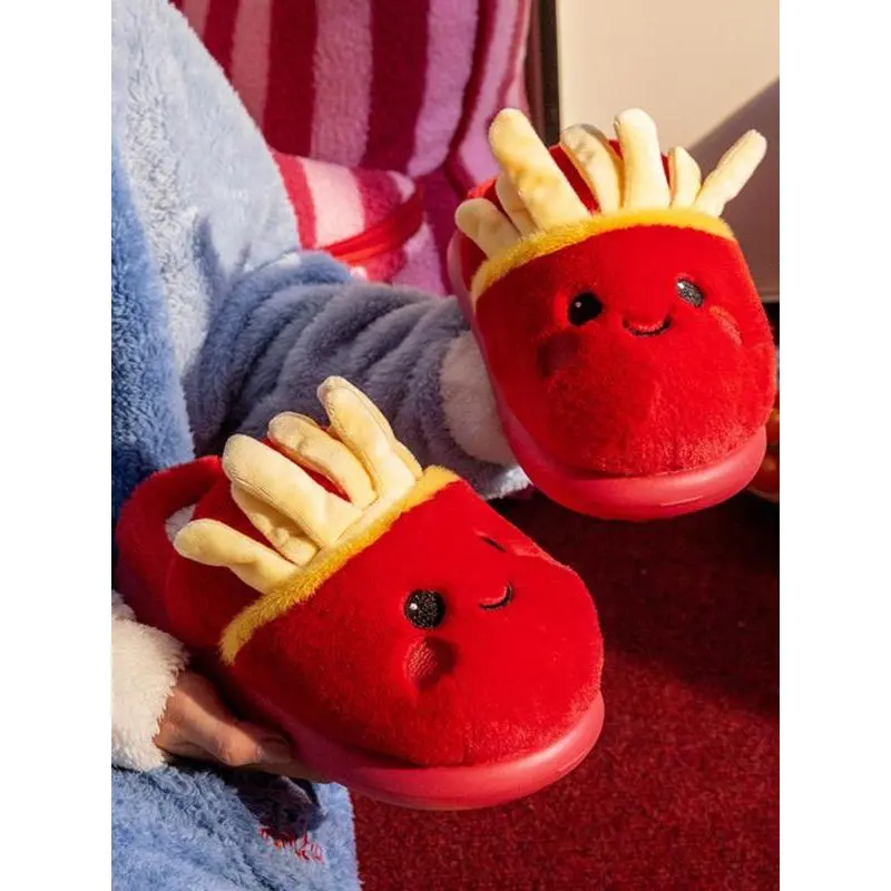 Cartoon Cute French Fries Slippers Unisex Fall Winter Comfort Indoor Outdoor Warm Couple Slippers, Cozy Home Footwear