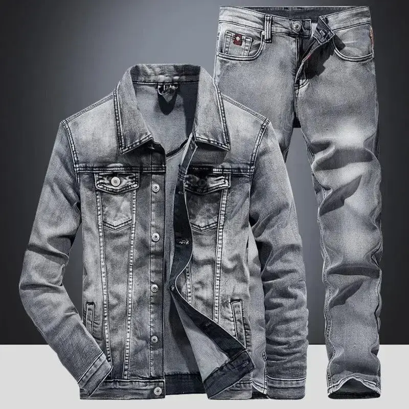 Denim Suit Men's Slim Micro-stretch Two-piece ✨ Elevate your style with our Denim Suit Men's Slim Micro-stretch Two-piece! This versatile set includes a spring and autumn jacket paired with jeans. Available in dark blue, gray, and light blue, it offers a sleek look for any occasion. Choose from sizes M (45-55kg), XL (62.5-70kg), XXL (70-77.5kg), XXXL (77.5-85kg), 4XL (90kg), and 5XL (100kg). Perfect for those seeking comfort and style. This two-piece set is ideal for spring and autumn. The slim micro-stretch material ensures a comfortable fit. Perfect for casual outings or everyday wear. Choose your favorite color and size for a stylish look.