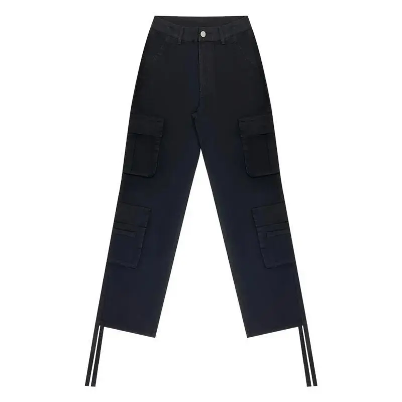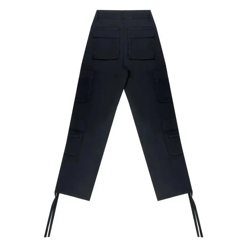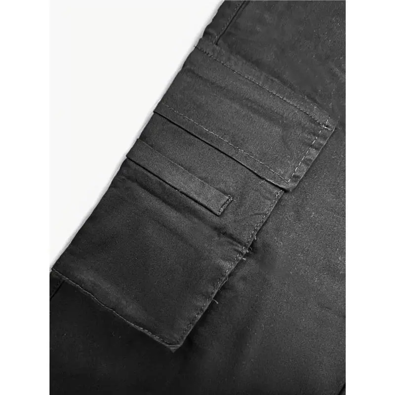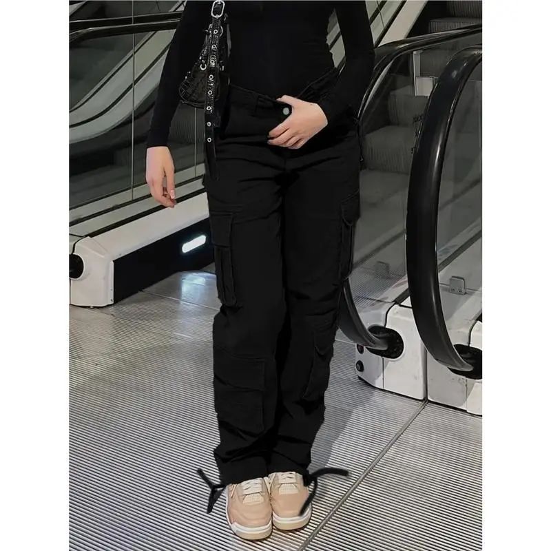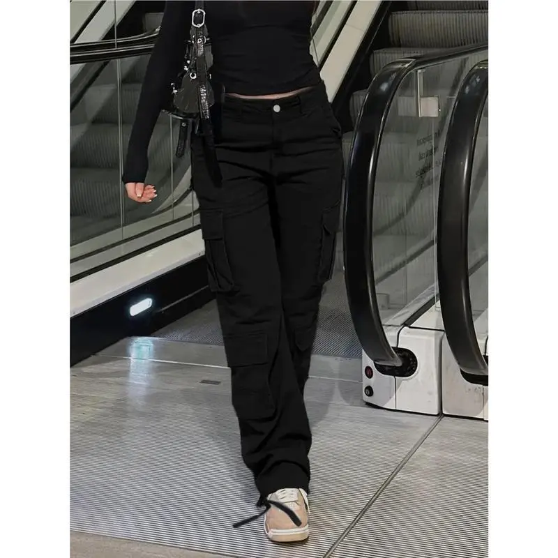 Women'S Black Cargo Pants with Multiple Utility Pockets - Stretchy Work Trousers, All-Season Formal & Casual Attire, Functional Workwear Pants for Women, Professional Casual Outfits, Elastic Waistband, Durable Denim, Loose Fit, Elastic WaistGift