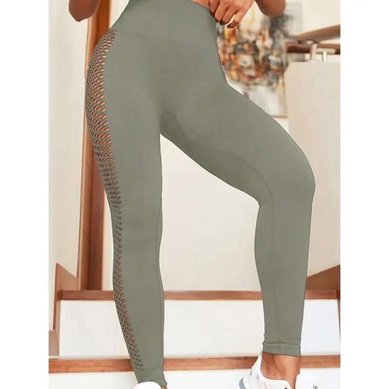 Women's Fishnet Sports Leggings, Solid Color Breathable Comfortable Skinny Pants, High Stretch Yoga Leggings, Ladies Sportswear for Indoor Outdoor Wear, Stretchy Workout Leggings, Bottoms