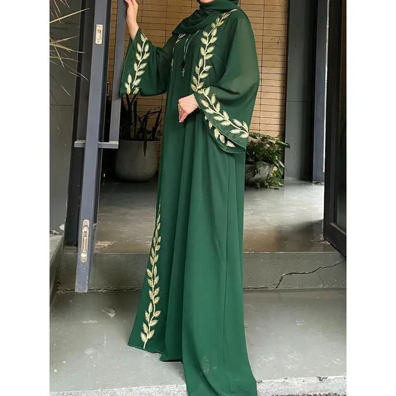 Eid Muslim Abaya Set ✨ Eid Muslim Abaya for Women ✨ This 2-piece set includes an embroidery dress and a scarf. Perfect for Dubai Arab and Morocco Abayas Kaftan styles. The set comes in four colors: Khaki, ink green, pink, and black. Choose from sizes S, M, L, XL, and XXL. Perfect for Eid This abaya set is ideal for Eid celebrations. It combines elegance and comfort. Choose the perfect size and color for your occasion.
