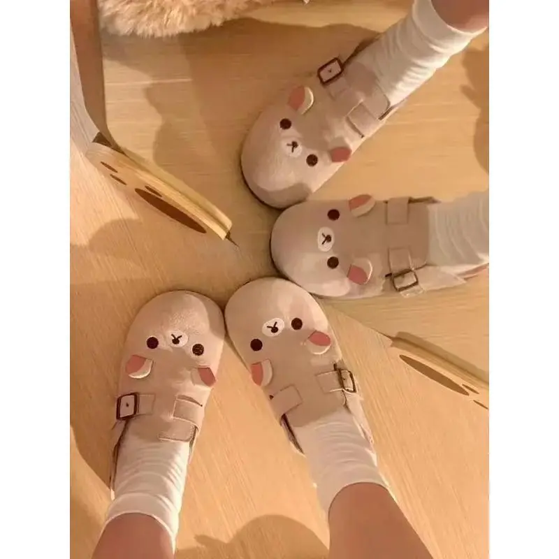 AnimePeripheryThickBottomRetroHalfBaotouBearCartoonShapedWomen'sShoesIdealforGirlGifts