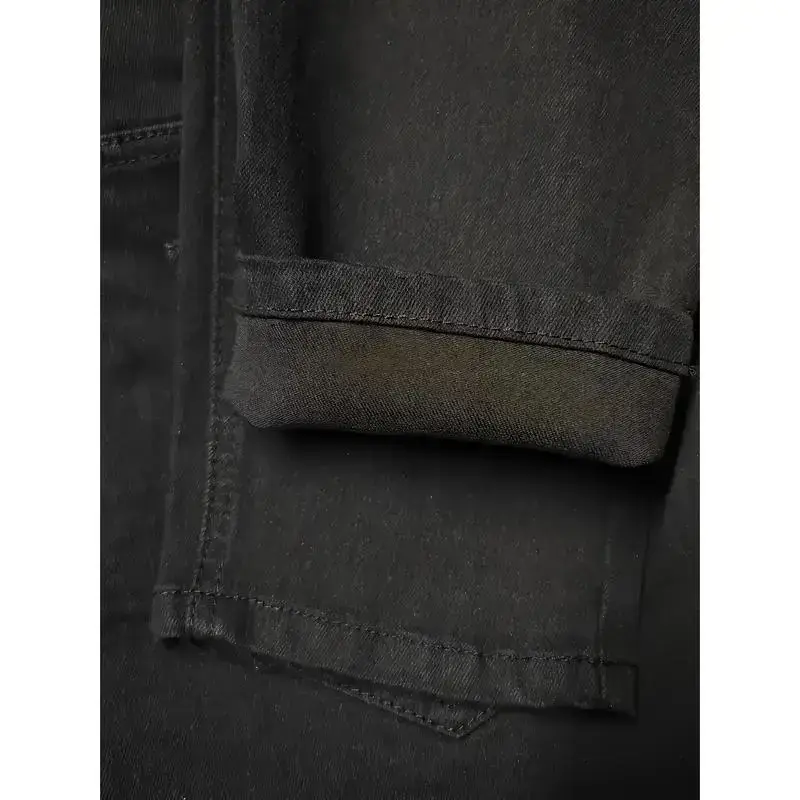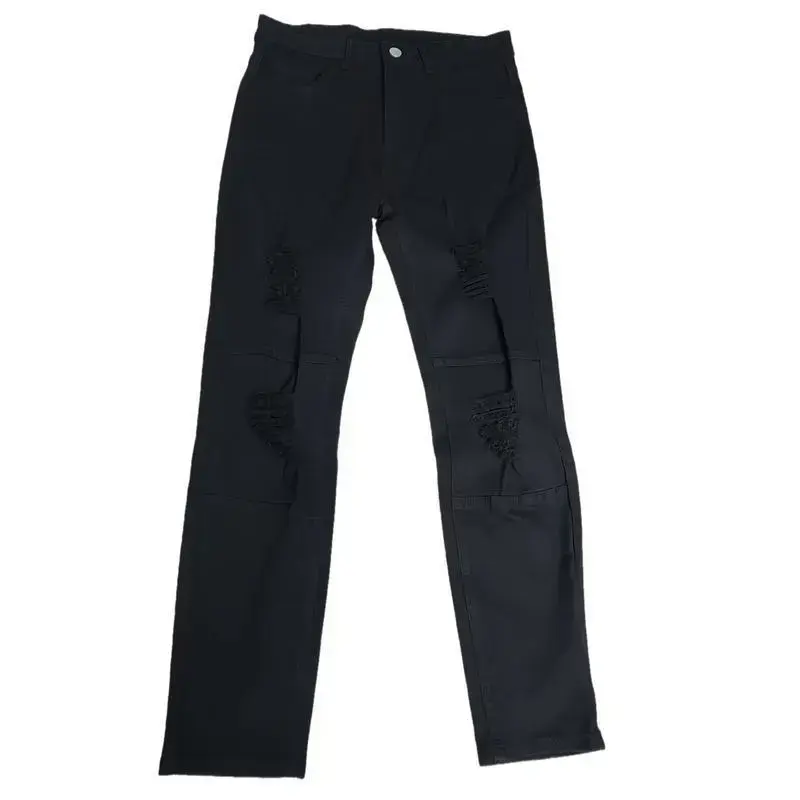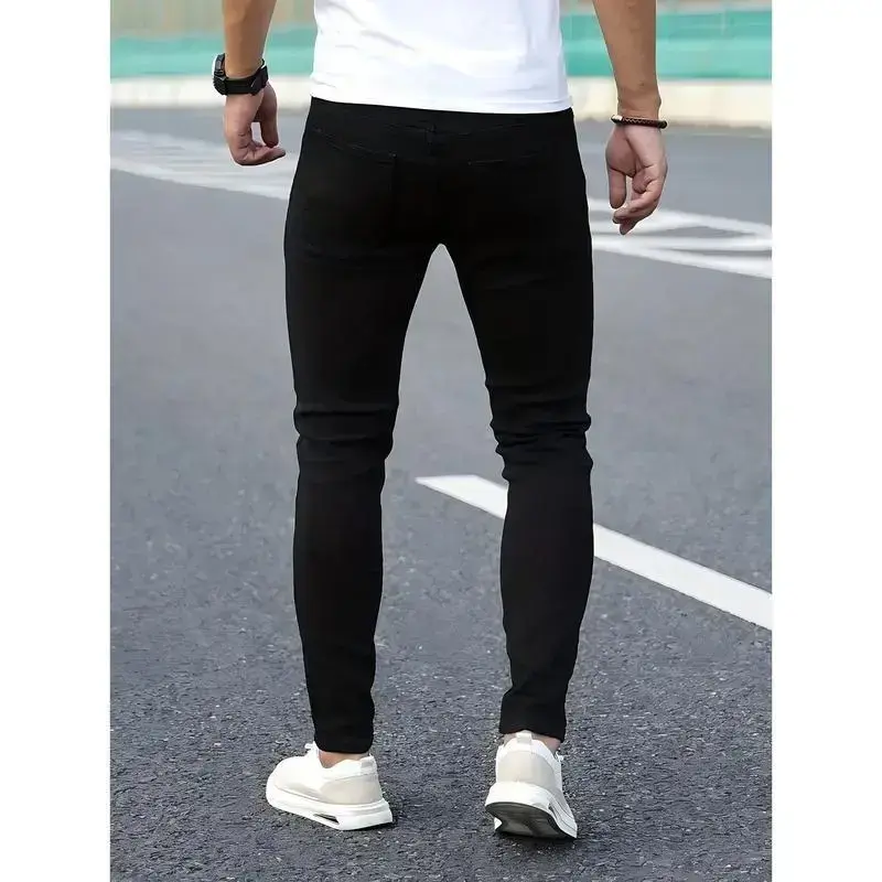🌟 2025 New Men's Distressed Slim-Fit Jeans 🌟 Elevate your casual wardrobe with these versatile black frayed jeans. Crafted from 55% rayon and 45% polyester, these jeans offer medium stretch for comfort. The raw wash and ripped pattern add a stylish edge. Perfect for adults, these mid-waist, skinny jeans are suitable for all seasons. 🌞 Care & Style: Machine wash or opt for professional dry cleaning. These jeans feature a zipper fly and are ideal for going out. The woven construction ensures durability. Item ID: EL 1080575. Origin: Guangdong, China. 🌍
