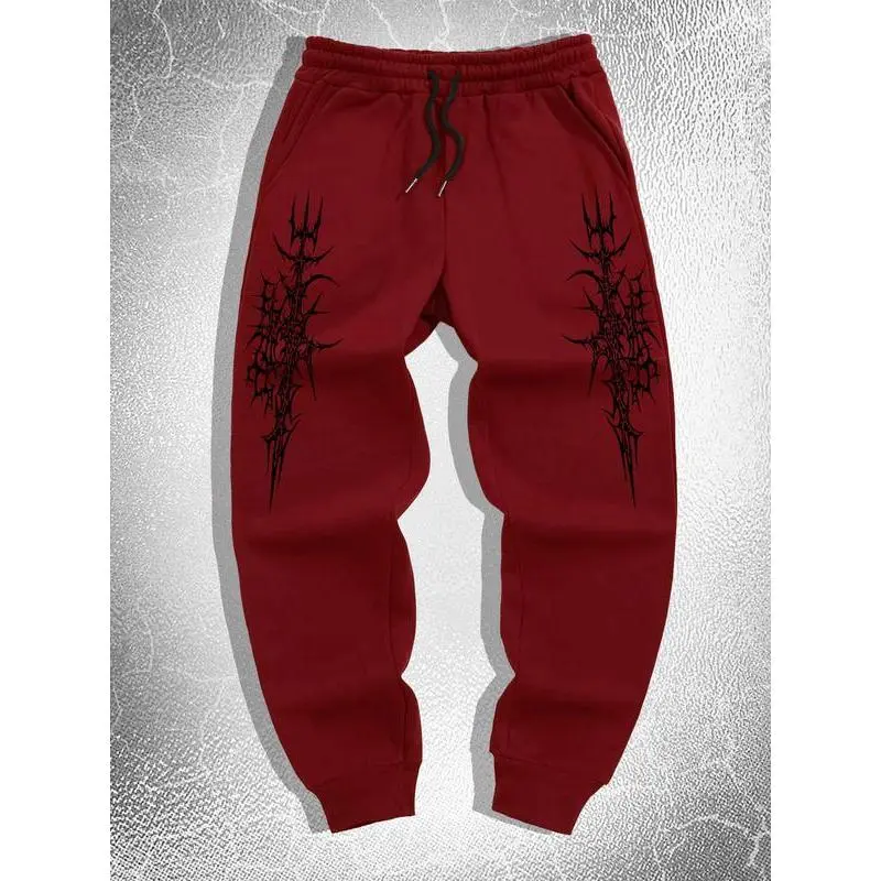 Men's Graphic Print Jogger Pants, Regular Fit Casual Comfy Sweatpants for Spring & Fall, Men's Trousers for Daily Wear