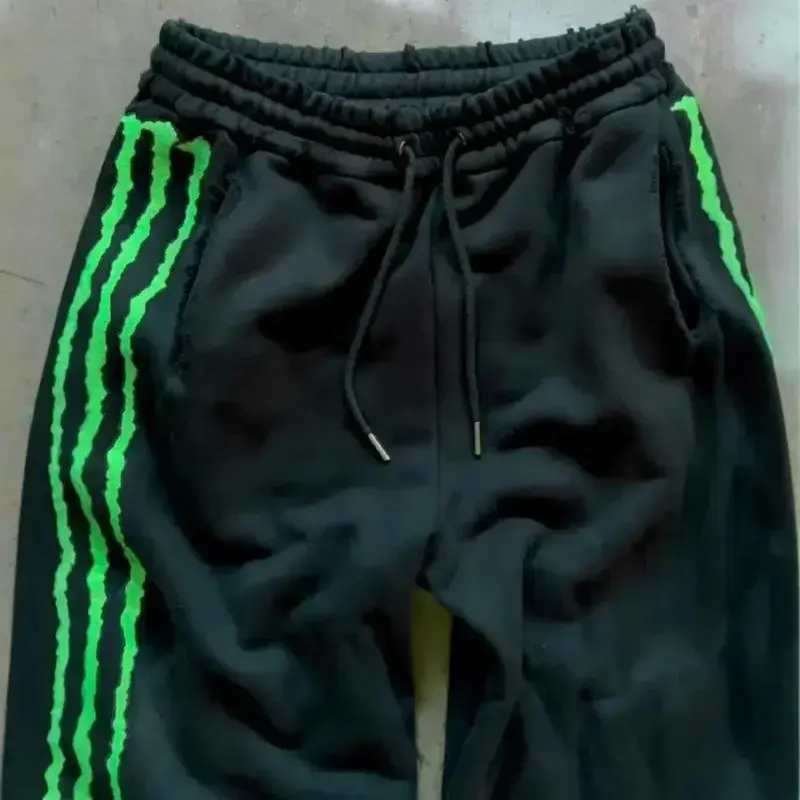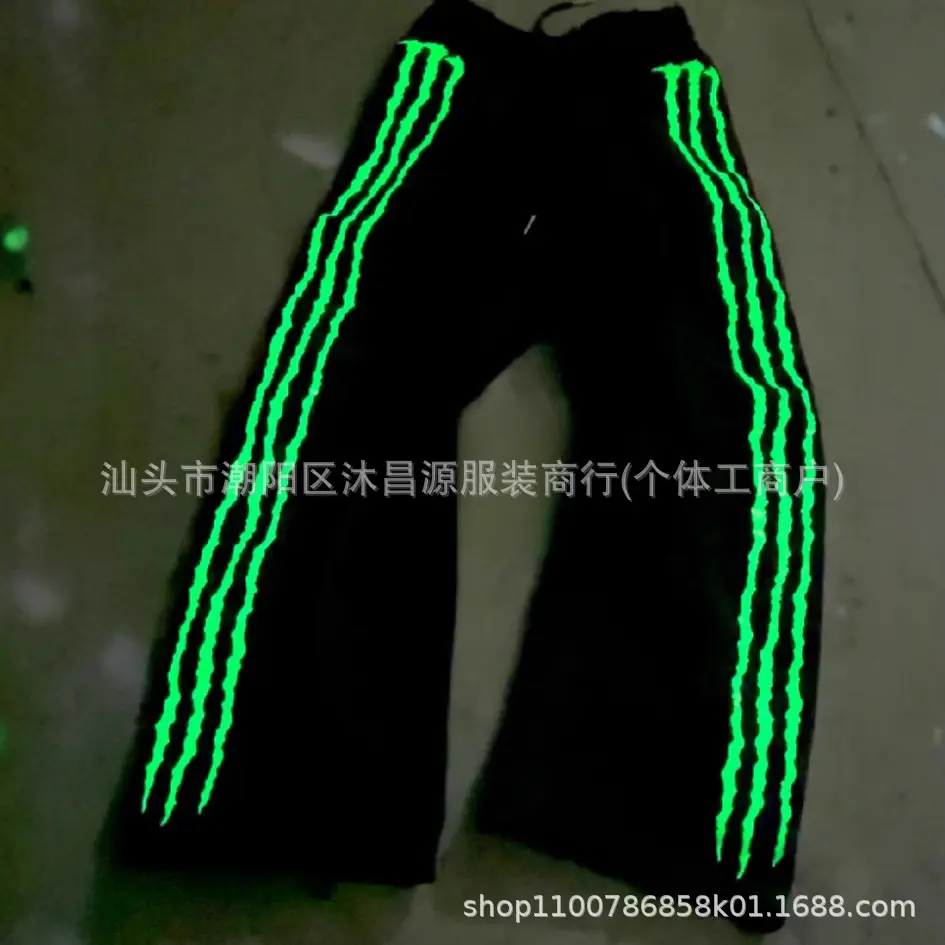 Stand out on the streets with these Claw Triple Stripe Fluorescence Embroidery Sweatpants. Crafted from soft cotton, they feature eye - catching glow - in - the - dark embroidery that adds a hip - hop personality. The drawstring design ensures a perfect fit, making these joggers both stylish and comfortable for casual wear.