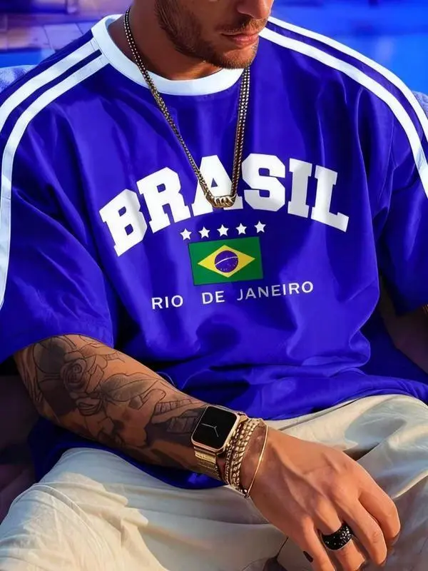 Brazil Football Fan Jersey World Cup Short Sleeve Shirt, Trendy Sports Style, Breathable Athletic Top, Breathable Quick-Dry Soft Fabric, Casual Long Fit Tee