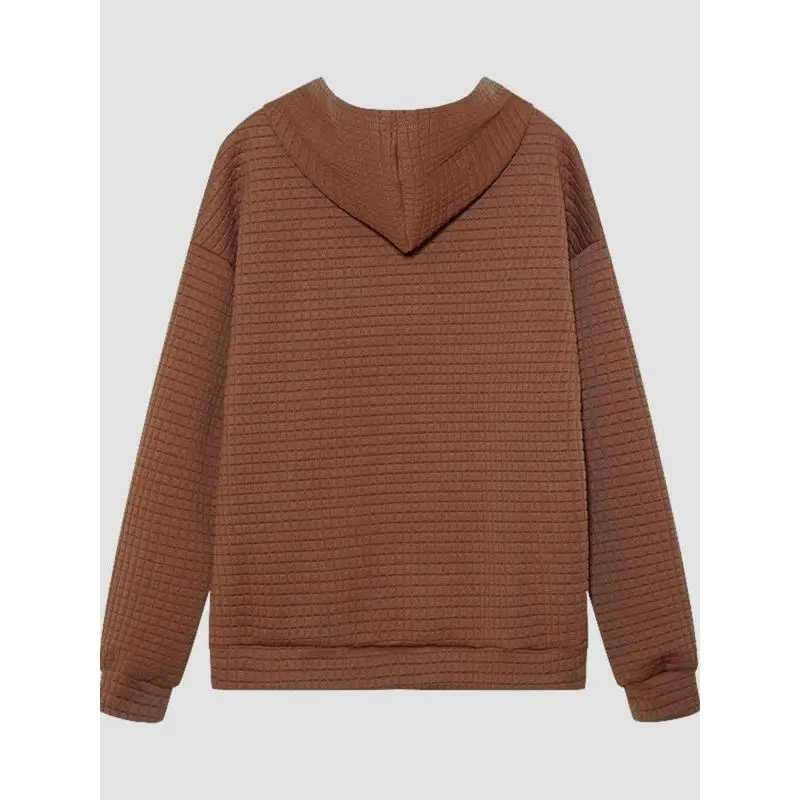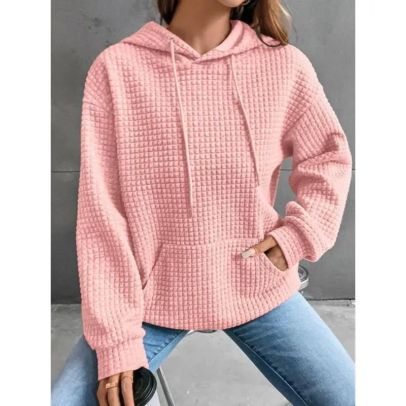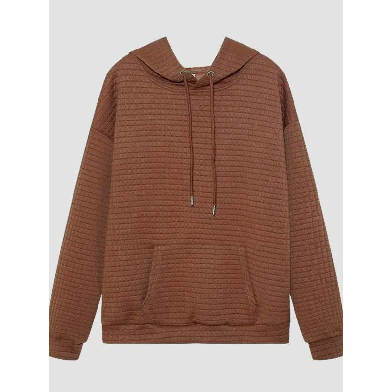 Women's Plain Textured Drawstring Drop Shoulder Hoodie, Casual Pocket Long Sleeve Hooded Sweatshirt For Fall & Winter, Women's Clothes For Daily WearGiftGift