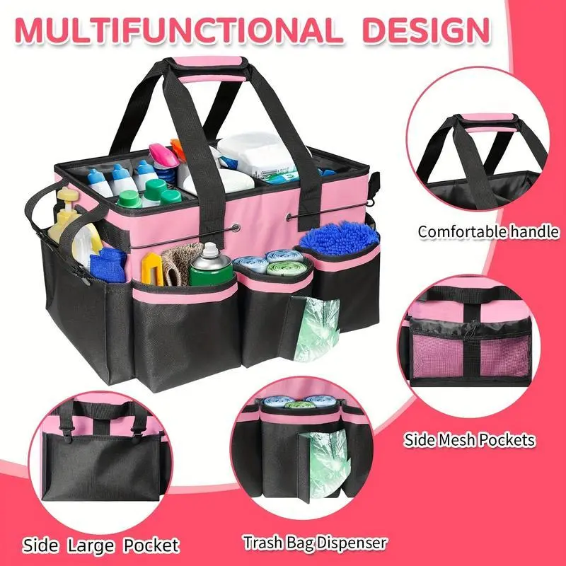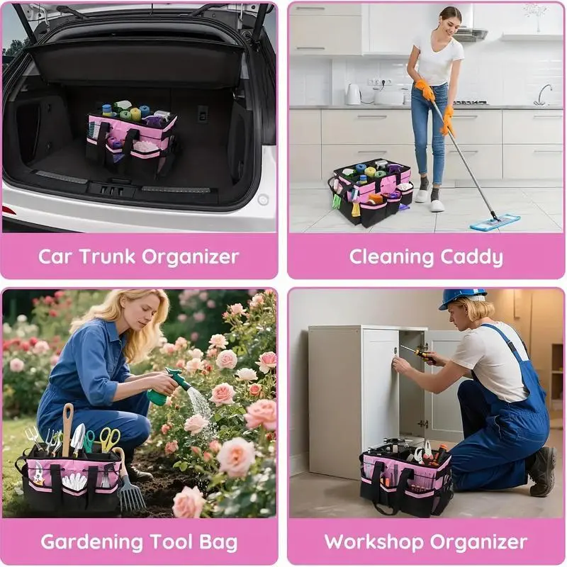 Large capacity cleaning bag tool storage bag cleaning gardening housekeeper cleaning bag with foldable partition and shoulder strap portable slung multifunctional storage bag