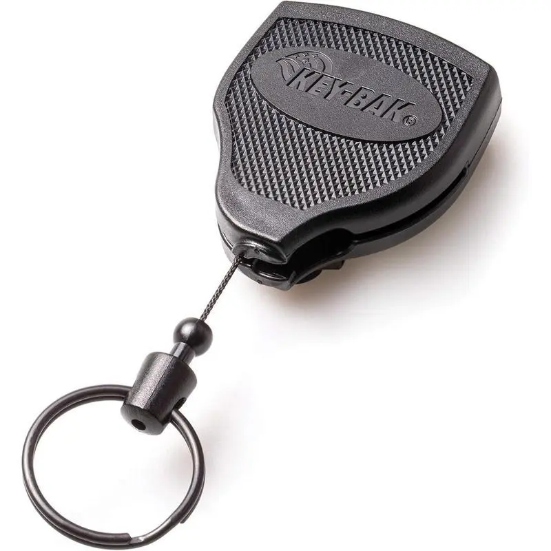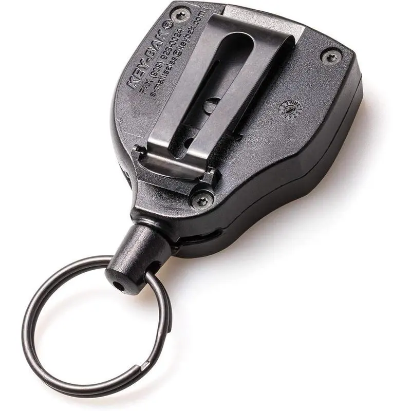 The SUPER48 Heavy Duty retractable key chain was built for rugged use and hard work.The durable Black polycarbonate case is impact resistant.Attach your keys or small tools to the oversized split ring and secure the clip to your belt.When you need your keys just pull them out, when your done let them go and the built-in tether retracts back into place until you need them again.When you need a heavy duty key holder to secure a large number of keys, The SUPER48 Heavy Duty retractable key chain your best choice. KEY-BAK Retractable Keychains have been Designed and made in the USA with globally sourced materials since 1948.Although we are often copied, nothing matches the quality or durability of a KEY-BAK.If you're looking for a high-quality, long lasting retractable keychain trust a KEY-BAK. Everyday Carry Retractable Keychains MINI-BAK Small Retractable Keychain The MINI-BAK Retractable Keychain is ideal to keep keys and small tools handy and ready for everyday use.The MINI-BAK is the standard of excellence in small retractable keychains.The Standard Duty nylon cord has a reach of 36" and a retraction force of 2 oz.and can easily carry up to 3 keys, while the 24" Heavy Duty nylon cord is capable of carrying 4 oz. SIDEKICK Carabiner Keychain & Badge Holder The Sidekick Retractable Keychain & Badge Holder has a tough molded polycarbonate case which makes the Sidekick strong, yet very light.The Sidekick is a versatile reel that holds keys and other small items (like a USB drive) as well as I.D.badges.The zinc alloy carabiner conveniently clips onto belt loops, bags or purses, keeping the Sidekick Retractable Keychain & Badge Holder always accessible, yet secure. SIDEKICK Lanyard Keychain & Badge Holder The Sidekick Retractable Keychain & Badge Lanyard has a tough molded polycarbonate case which makes the Sidekick strong, yet very light.The Sidekick is a versatile reel that holds keys and other small items (like a USB drive) as well as I.D.badges.The paracord lanyard with a spring loaded cinch and break away keeps the Sidekick Retractable Keychain & Badge Lanyard always accessible, yet secure. MID6 Retractable Keychain The MID6 Heavy Duty Retractable Keychain features a durable polycarbonate case and a strong Kevlar cord, that ensures your keys will stay secure and accessible when you need them most!Choose between a belt clip or carabiner attachment for convenient and secure attachment to a belt loop, bag, backpack, etc. Heavy Duty Retractable Keychains SECURIT Carabiner Retractable Keychain The SECURIT Carabiner Retractable Keychain conveniently attaches to almost everything, making this one of the most widely used retractable keychains we make.The SECURIT Carabiner Retractable Keychain is available in 3 retraction forces ranging from our Heavy Duty with 8 oz.of retraction force to Xtreme Duty with 20 oz.of retraction force. SUPER48 Plus Heavy Duty Retractable Keychain The SUPER48 Plus features a newly designed ambidextrous ball-joint lock so the reel can be used on either hip, a larger belt clip specifically designed to accommodate 2-1/4" Duty Belts and an integrated belt clip lock that easily converts the clip to a belt loop - no pin required.All SUPER48 Series Keychains are made in the USA with globally sourced materials. Ratch-It Locking Keychain The Ratch-It Locking Keychain locks the reel in 5" intervals.Just pull the keychain to the desired length and the kevlar cord will lock in place.With an easy tug on the cord, the reel unlocks and retracts.Available with metal a carabiner or belt clip and in 2 retraction forces Heavy Duty 8 oz.to Super Duty 13 oz.of retraction force. ORIGINAL Retractable Keychain The product that got KEY-BAK started in 1948, The Original Retractable Keychain is a heavy duty retractable keychain that has been bulit to last. Our Original Retractable Keychain comes with a classic chrome finish, or the textured black vinyl. Select the stainless steel chain, or the rugged Kevlar cord. Additionally, select the back attachment that's best for you: a sturdy belt clip, secure belt loop, or the removable rotating clip.