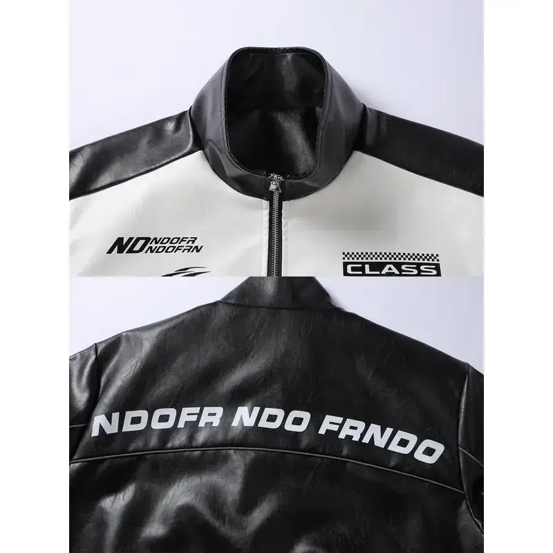 【Racing-inspired look】: Features a racer jacket style that adds an edge to your wardrobe, perfect for motorsport enthusiasts. 【Stand-up collar】: Equipped with a stand-up collar that prevents wind entry, enhancing protection against chilly conditions. 【Glossy leather finish】: Crafted from leather material, showcasing a glossy texture that elevates the overall appearance of the jacket. 【Durable construction】: Designed with windproof and wear-resistant features, ensuring longevity and performance for outdoor activities. 【Loose-fitting cut】: The relaxed fit provides ample space for movement, making it suitable for various casual scenarios.