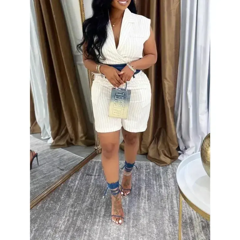 Women'S Patchwork Sleeveless Vest Shorts Two-Piece Set